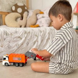 Interaktīvā atkritumu savākšanas mašīna ir lieliski izstrādēts pilsētas komunālās tehnikas modelis, kas sajūsminās ikvienu mazo pilsētas transporta cienītāju. Izgatavota no izturīgiem materiāliem un raksturīgajā oranži‑baltajā krāsu salikumā, tā kļūs par iemīļotu rotaļlietu jūsu bērna kolekcijā.