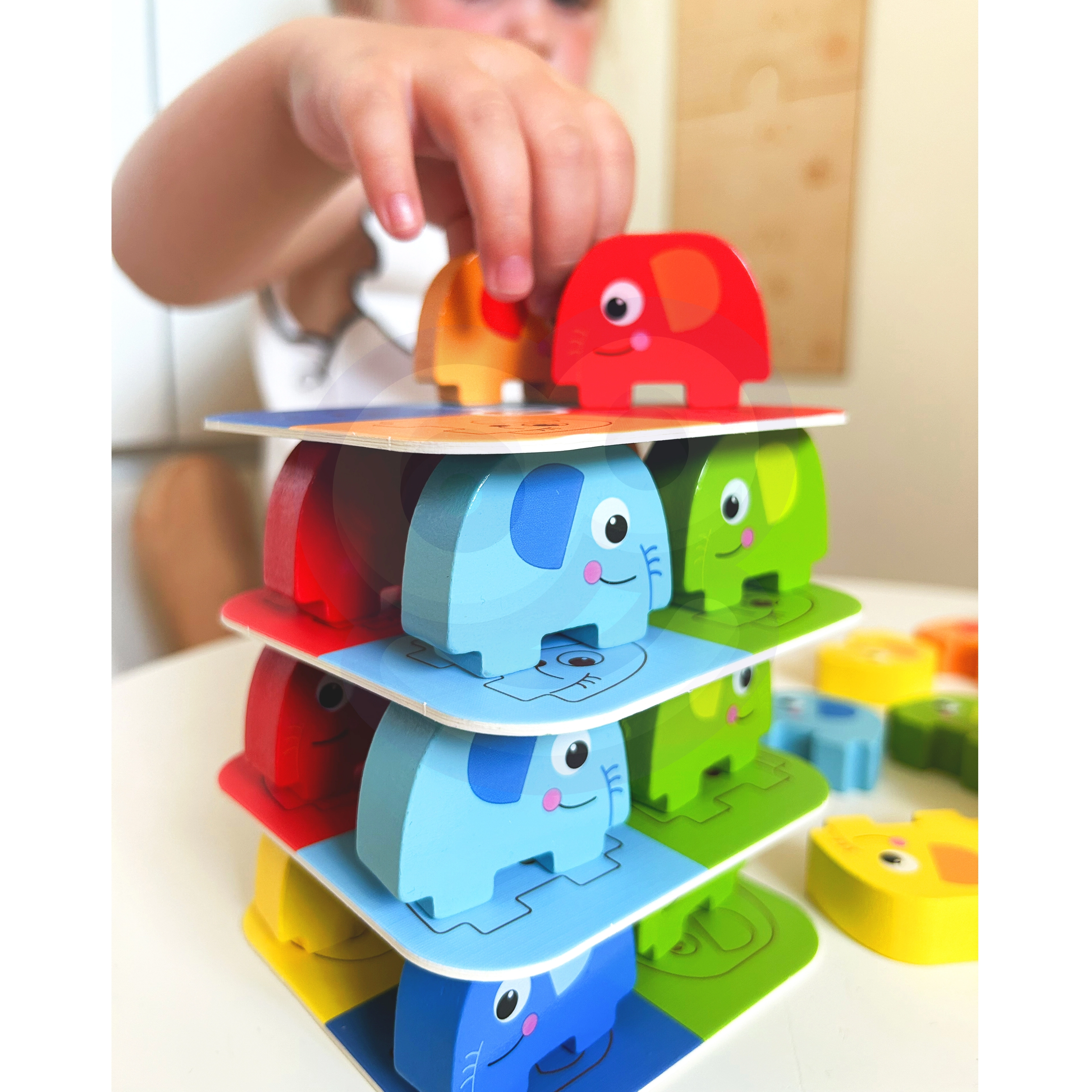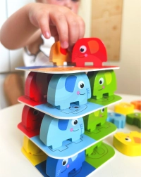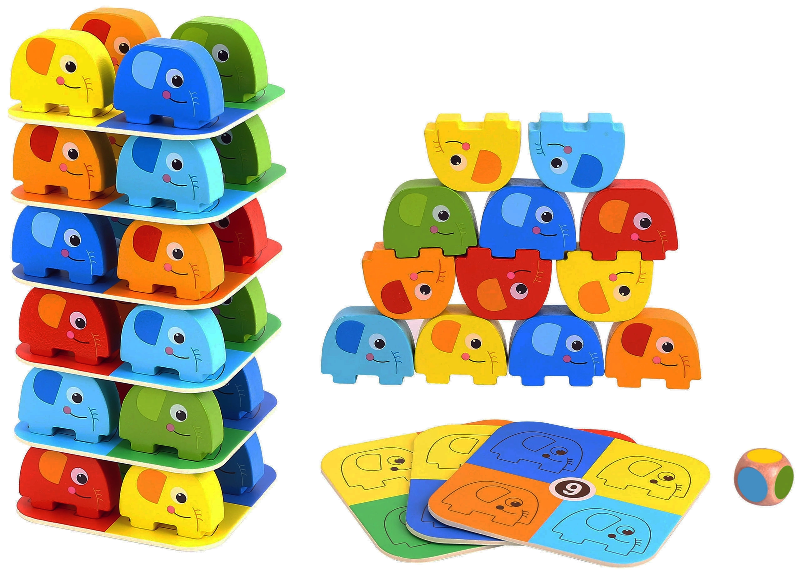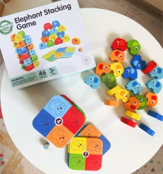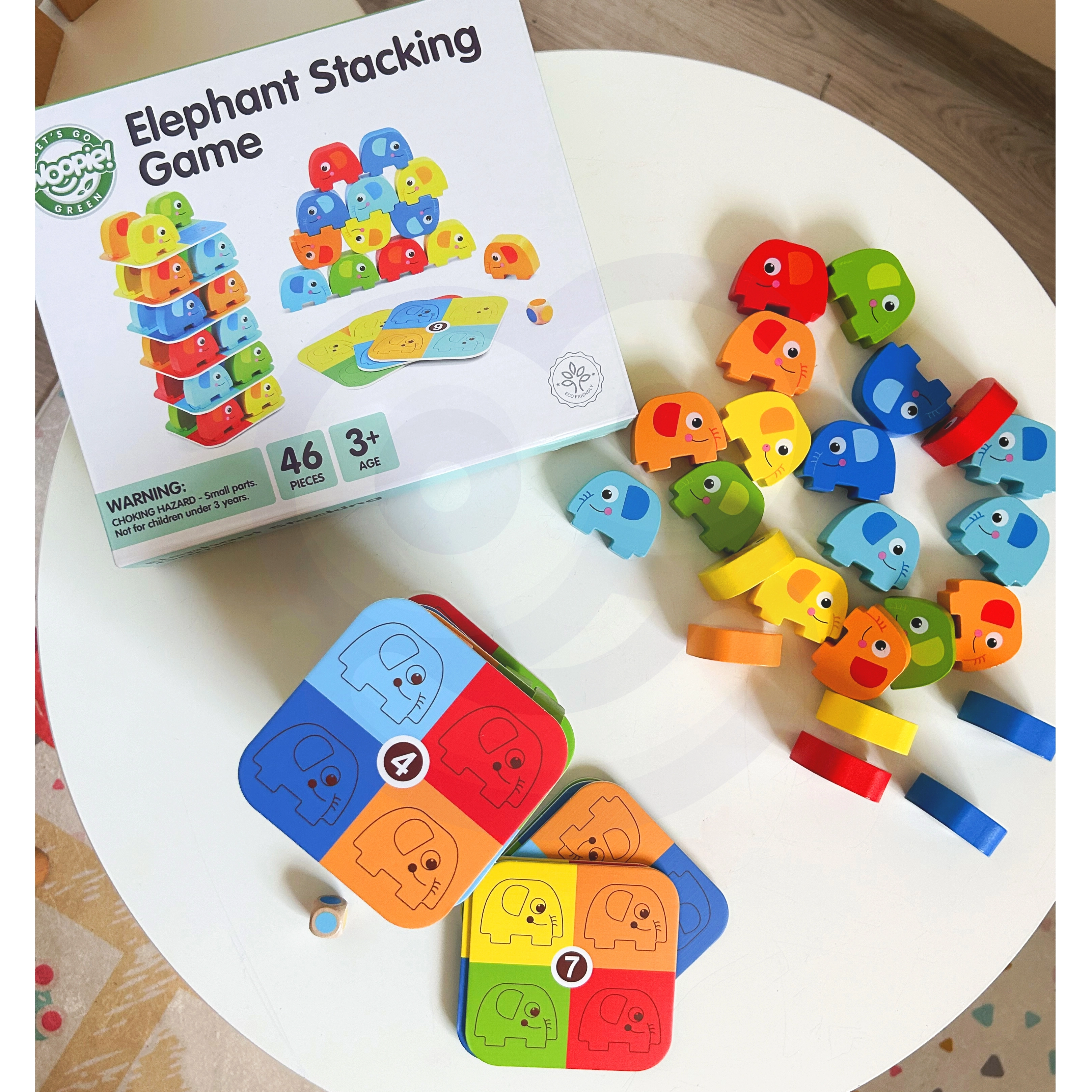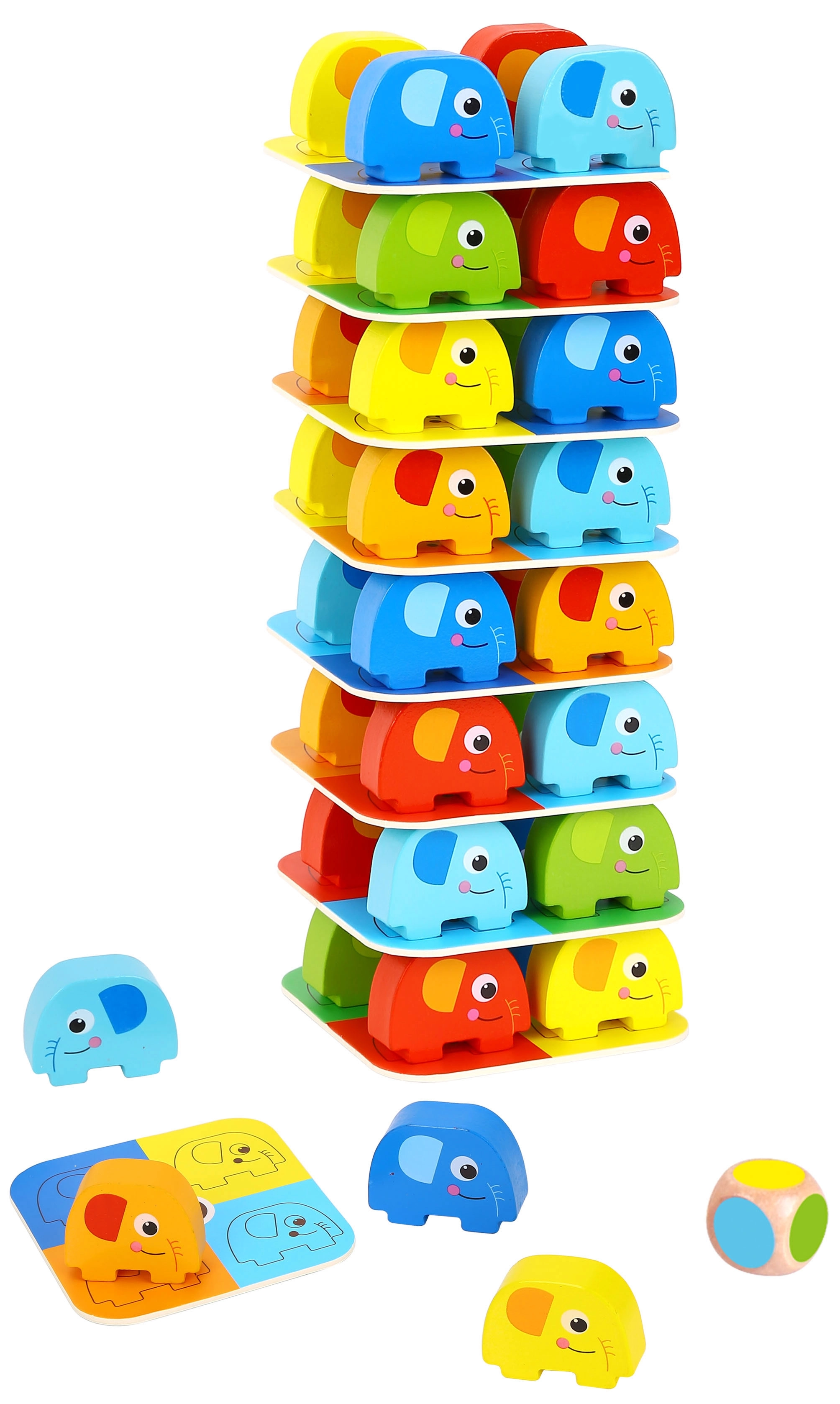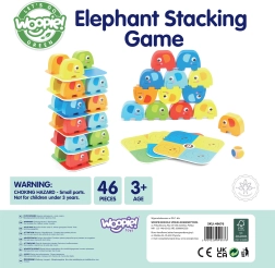 Izbaudiet jautrību un piedzīvojumus ar Woopie spēli Zilonis uz ziloņa. Šajā spēlē ir 46 detaļas, tostarp krāsainas klucīši un spēļu kārtis. Tā ir ideāli piemērota kopīgai laika pavadīšanai ar ģimeni. Košās krāsas un mīlīgās formas piesaista uzmanību un piedāvā divus aizraujošus spēles veidus – kā salikšanas spēli vai kā alternatīvu Jenga.