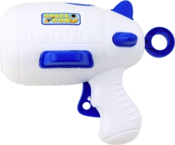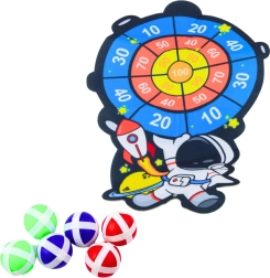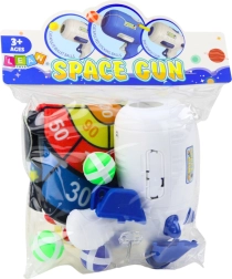 Pistole kosmosa kuģa formā ir izgatavota no izturīga materiāla un ļauj viegli uzvilkt atsperes mehānismu precīzai šaušanai. Sešas komplektā iekļautās bumbiņas ar lipekli viegli pielīp pie mērķa dēļa, kas atvieglo punktu skaitīšanu. Ātra montāžas āķa sistēma pakāršanai pie sienas, durvīm vai tāfeles kopā ar ērtu iepakojumu ļauj vienkārši glabāt un pārnēsāt.