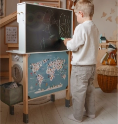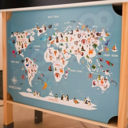 - Krīta tāfele un krāsaina pasaules karte