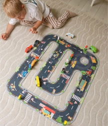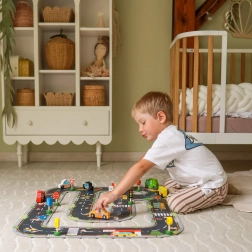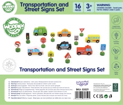 Šis koka komplekts ir ideāli piemērots sīkās motorikas, iztēles un sociālo prasmju attīstīšanai. Bērni var veidot savas pilsētas, ainiņas un situācijas uz ceļa, mācīties atpazīt transportlīdzekļus un ceļa zīmes un dabiski izprast drošas uzvedības pamatprincipus uz ceļa.