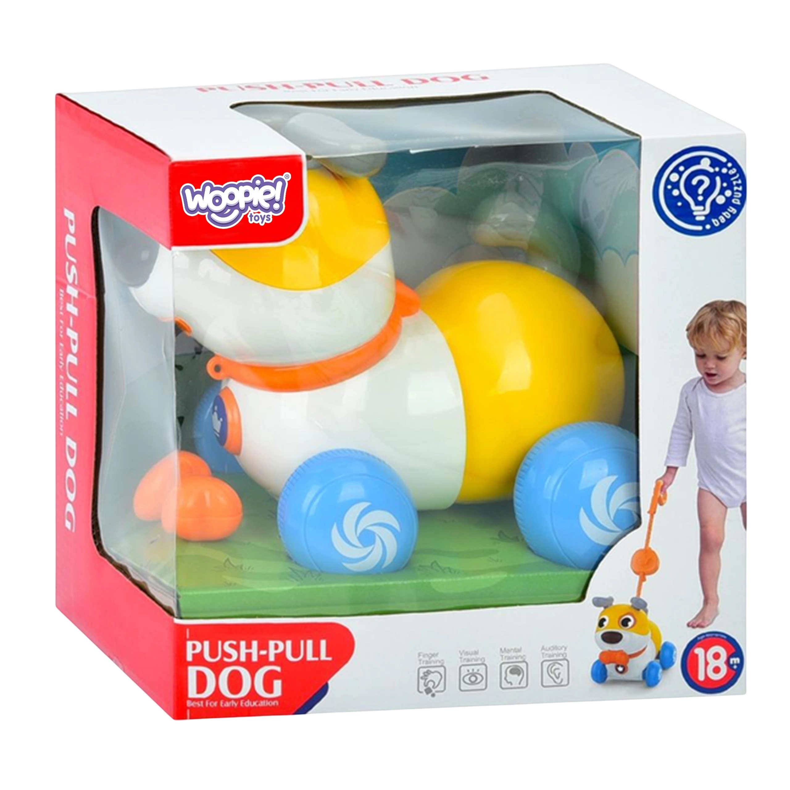 Interaktīvais sunītis WOOPIE ir radīts mazajiem izzinātājiem, kuri mīl kustību un atklājumus. Rotaļlietu var lietot kā stumjamu staigulīti ar garu rokturi un arī kā velkamu draugu ar pavadiņu – ideāli līdzsvara, gaitas un lielās motorikas attīstībai. Draudzīgais dizains ar lielām acīm un gludām, noapaļotām formām ir drošs un bērniem saistošs.