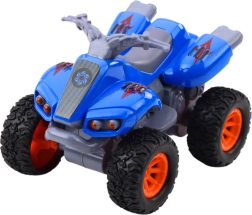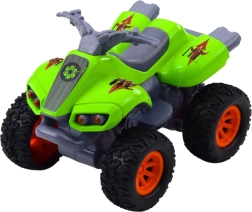 Kvads ar piedziņu ir dinamiska apvidus rotaļlieta, kas pārsteigs ikvienu mazo ātras braukšanas entuziastu. Gumijas riteņi un izturīgā metāla virsbūve piešķir kvadam reālistisku uzvedību kustībā, ar iespēju braukt gan mājās, gan ārā.