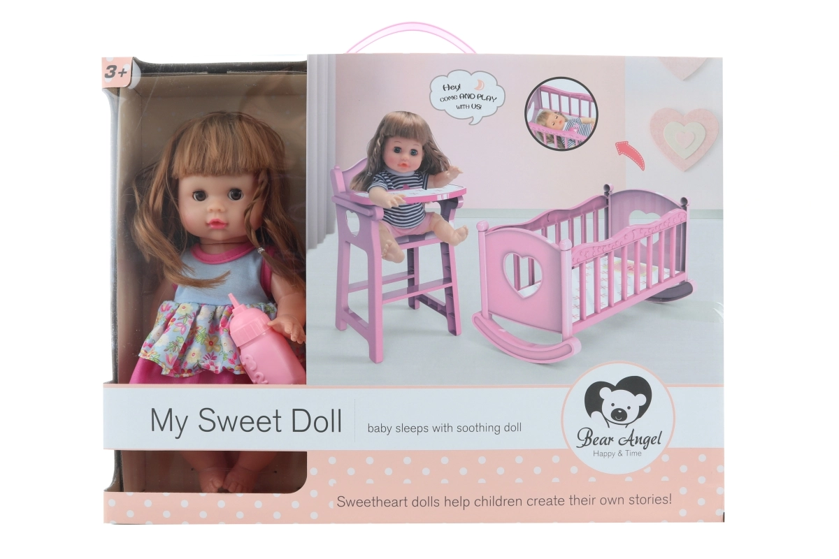 Iepakojumā atradīsiet arī šūpuli, kas lieliski papildina kopējo spēles pieredzi. Lelle ir aprīkota ar baterijām, kas ir iekļautas komplektā.