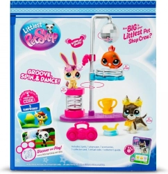 Ienirsti LITTLES PET SHOP pasaulē un izbaudi disko atmosfēru! Šis rotaļīgais komplekts piedāvā trīs deju mīluļus, gatavus mirdzēt zem disko bumbas gaismām. Griežamās platformas ļauj tiem griezties un demonstrēt savas labākās kustības, bet stilīgie aksesuāri izceļ viņu personību.