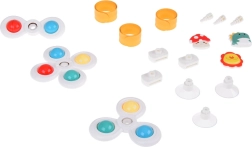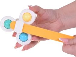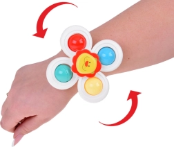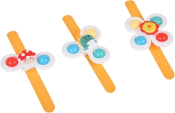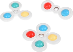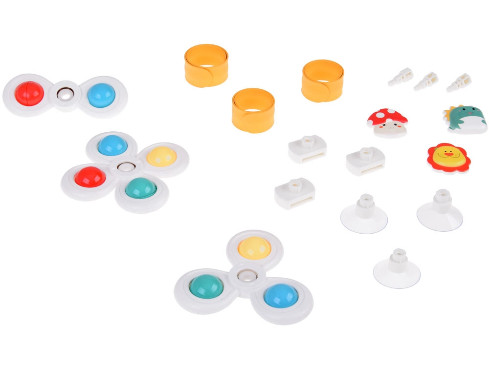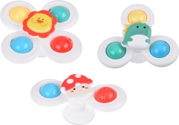 Pateicoties speciālajiem griešanās gredzeniem, spinneris attīsta jūsu bērna motorikas prasmes un sniedz nebeidzamu izklaidi. Spinneris ir pieejams 3 gabalos, katram ir savs piesūceknis un siksniņa, nodrošinot krāsainus un jautrus brīžus.