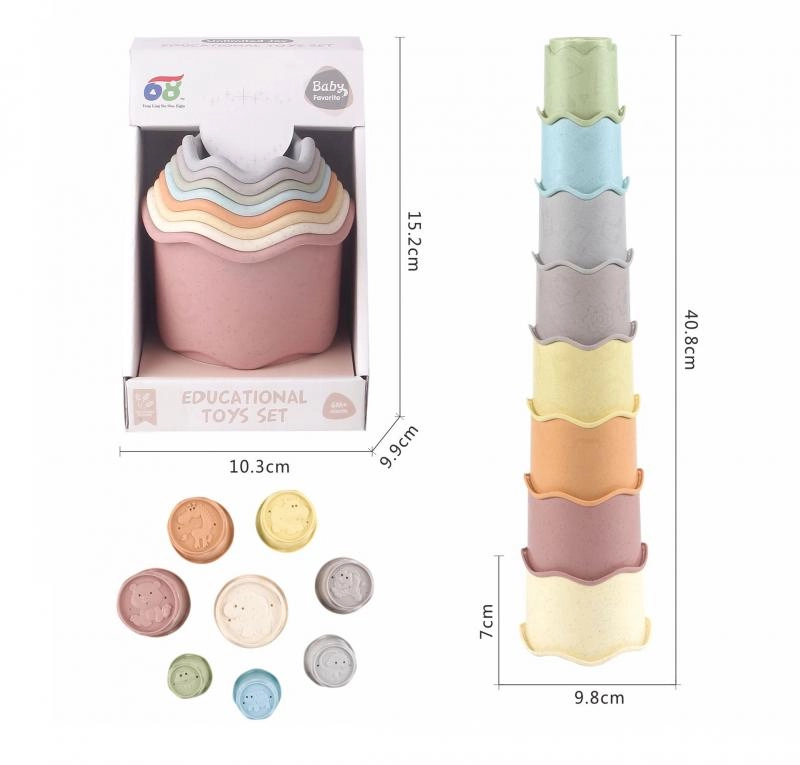 Iecienītā 8 kausiņu tornīša spēle ir ideāla rotaļlieta pašiem mazākajiem. Pateicoties universālajam pielietojumam, bērni to izmantos peldoties vannā, smiltīs un rotaļājoties mājās. Kārtošana un salikšana veicina acu–roku koordināciju un telpiskās iztēles attīstību.