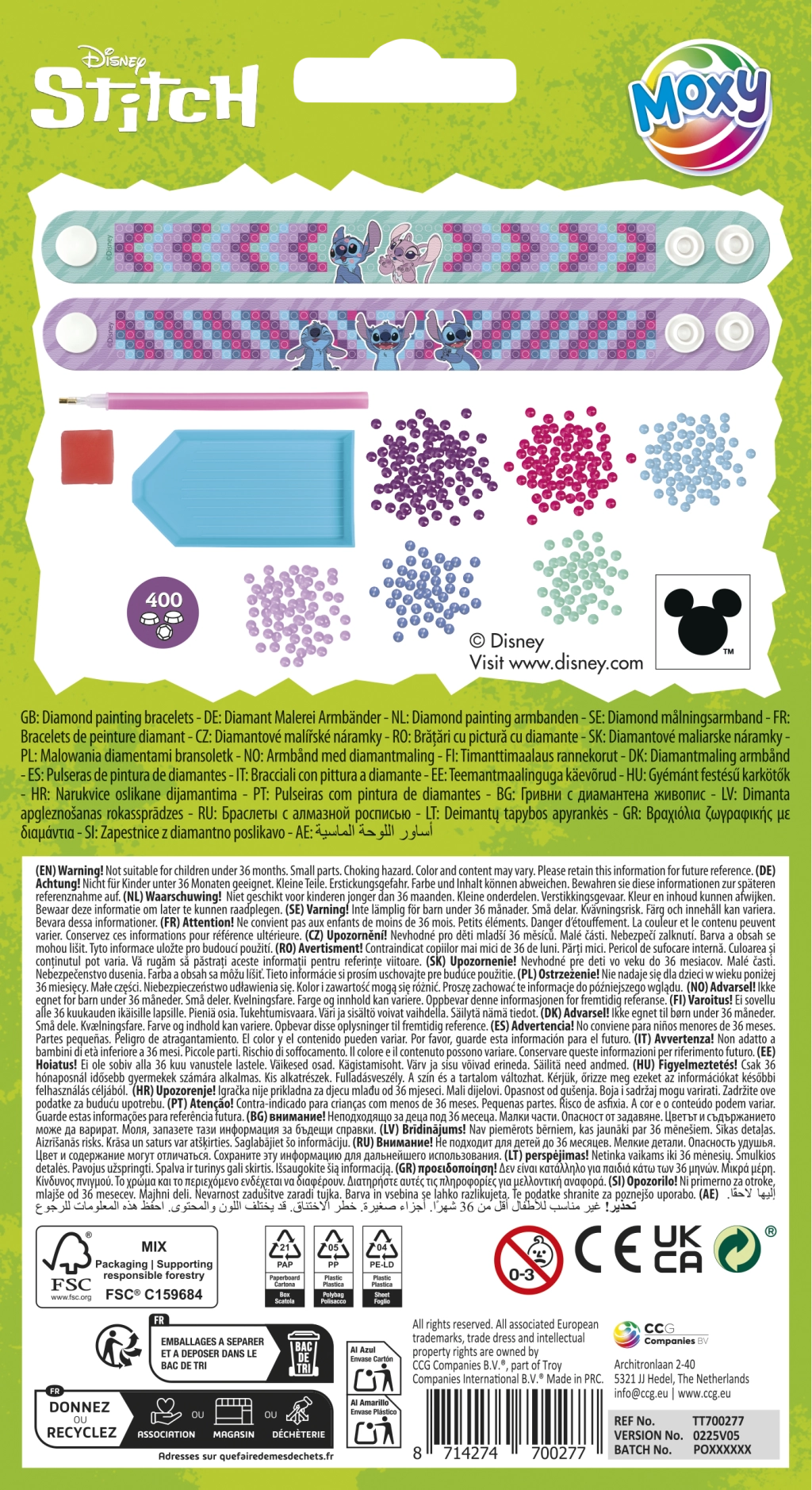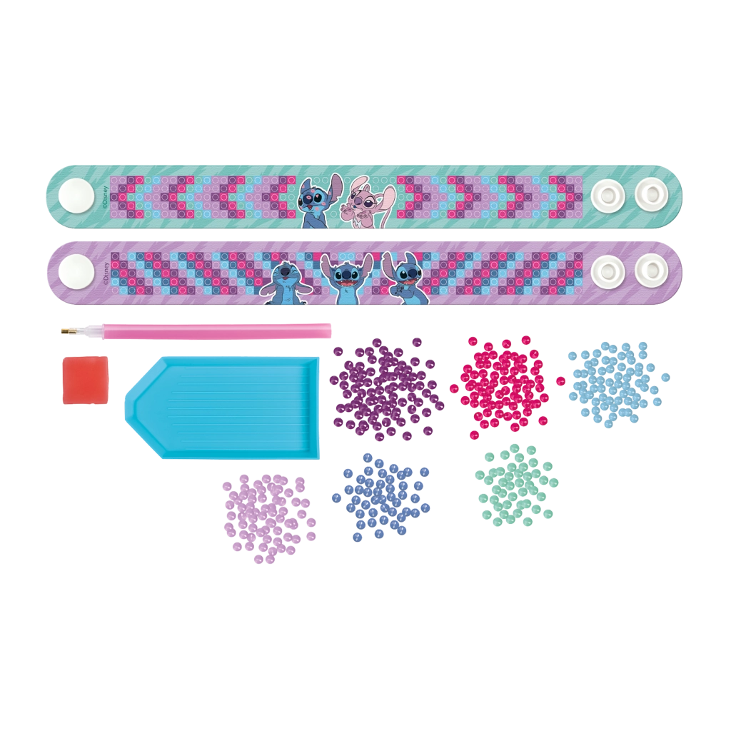 Izveidojiet savas mirdzošās aproces ar Stiča motīvu, izmantojot dimanta gleznošanu. Šis radošais komplekts satur visu nepieciešamo, lai izrotātu divas oriģinālas aproces ar mirdzošiem akmentiņiem.