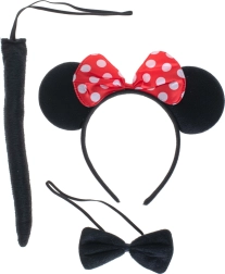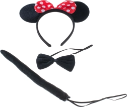Šis pilnais pelītes kostīma komplekts ir ideāli piemērots karnevālam, Helovīnam, skolas uzvedumiem un rotaļām mājās. Ikoniskajām ausīm ar sarkanu, punktotu bantīti pieskaņota melna tauriņkaklasaite un aste, tāpēc pārtapšana ir gatava dažu sekunžu laikā.