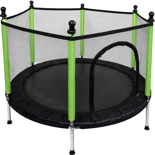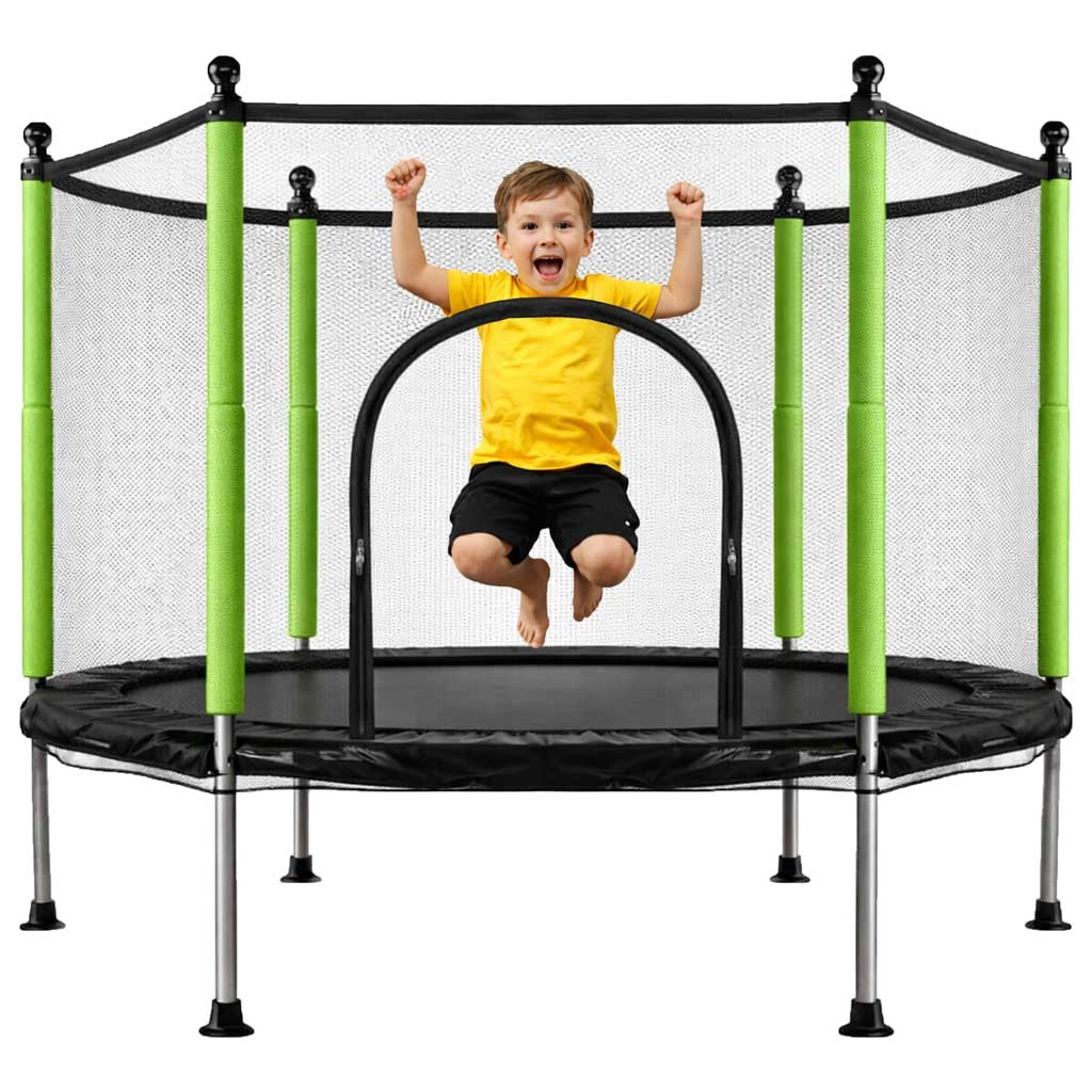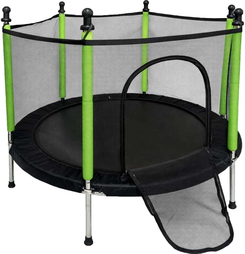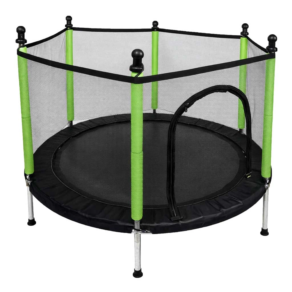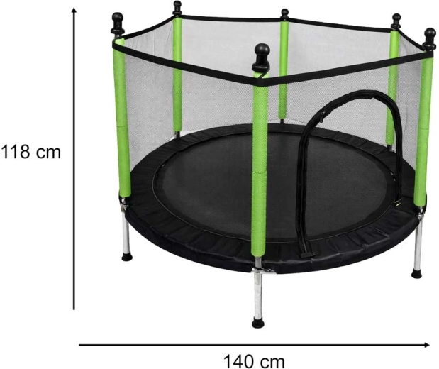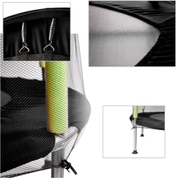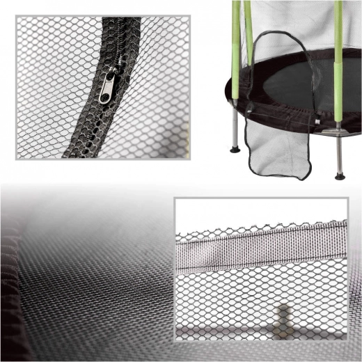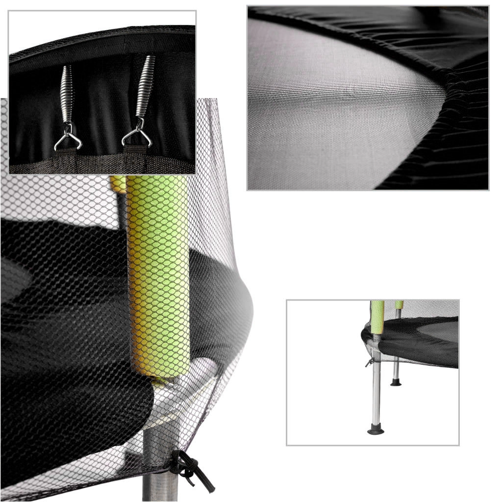 Aizsargtīkls cieši apņem lēkāšanas virsmu, un ieeja ar divkāršu rāvējslēdzēju novērš nejaušu atvēršanos. Putu pārvalki uz stabiem pasargā no triecieniem, tāpēc bērni var bezrūpīgi rotaļāties.