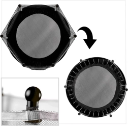 Sešas tērauda kājas ar pret slīdēšanu drošām uzlikām stingri tur batutu savā vietā. Elastīgā pamatne un 36 izturīgas atsperes nodrošina vienmērīgu atlēcienu un ērtu piezemēšanos.