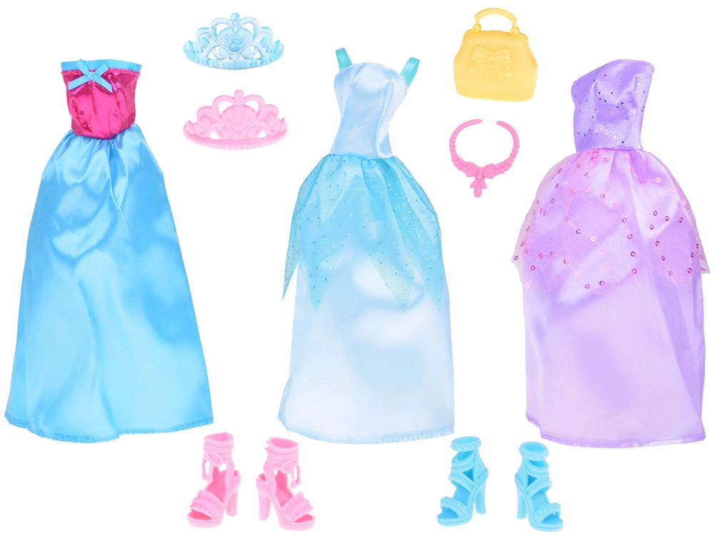 Modes leļļu tērpu komplekts ir ideāla izvēle ikvienai jaunai dizainerei, kas sapņo par savu modes skati. Tajā ir trīs dažādas kleitas, katra ar unikālu piegriezumu un krāsu, kas ļauj veidot daudzveidīgus tēlus dažādiem notikumiem.