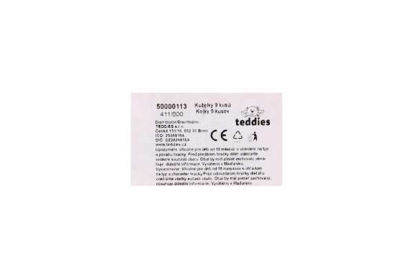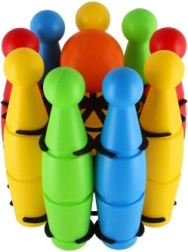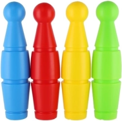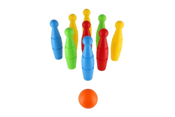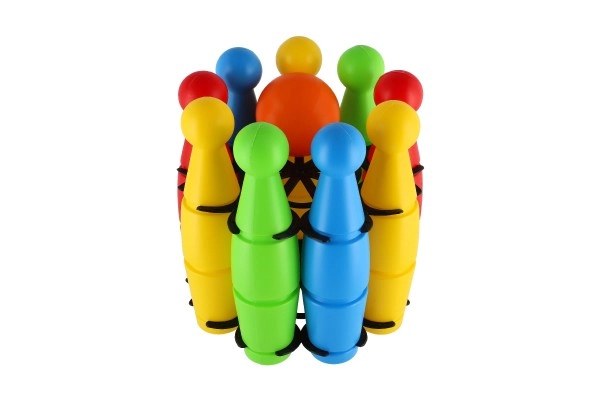 - 9 plastmasas ķegļi, 1 plastmasas bumba
