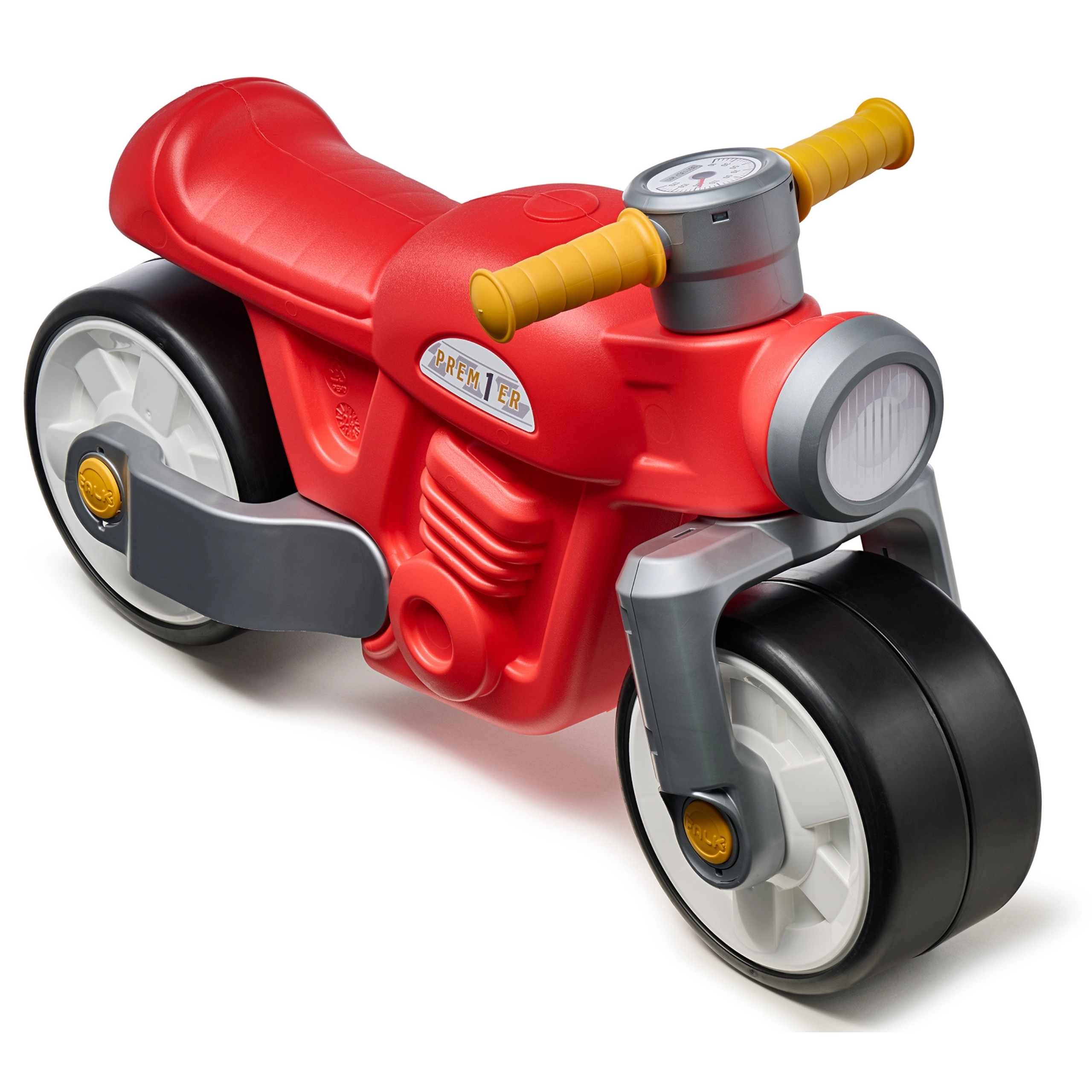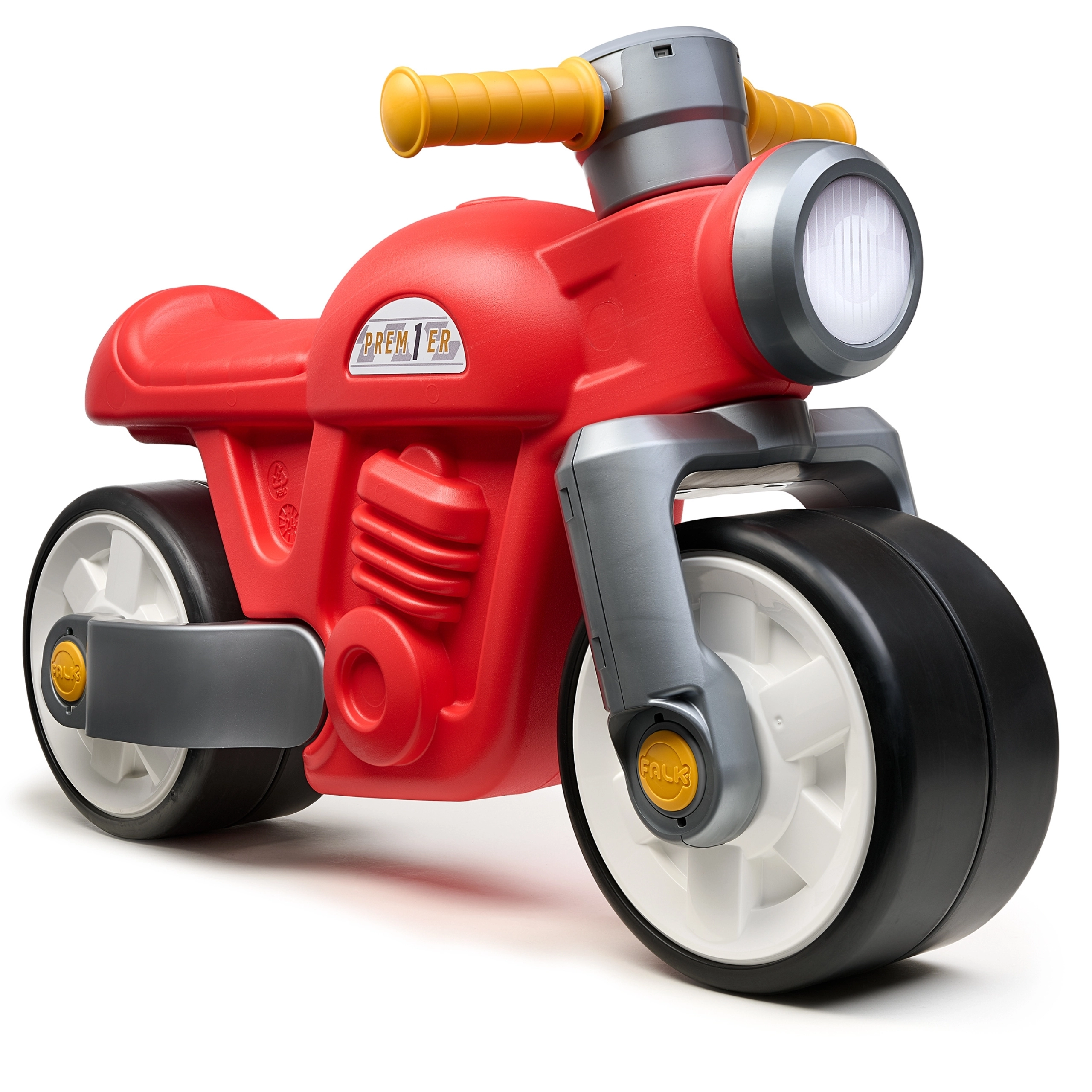 Motocikla elastomēra virsma ir īpaši izturīga pret skrāpējumiem, kas garantē rotaļlietas ilgmūžību. Pateicoties platajiem riteņiem, tas sniedz drošības sajūtu un palīdz mazajiem trenēt līdzsvaru un motorikas prasmes.