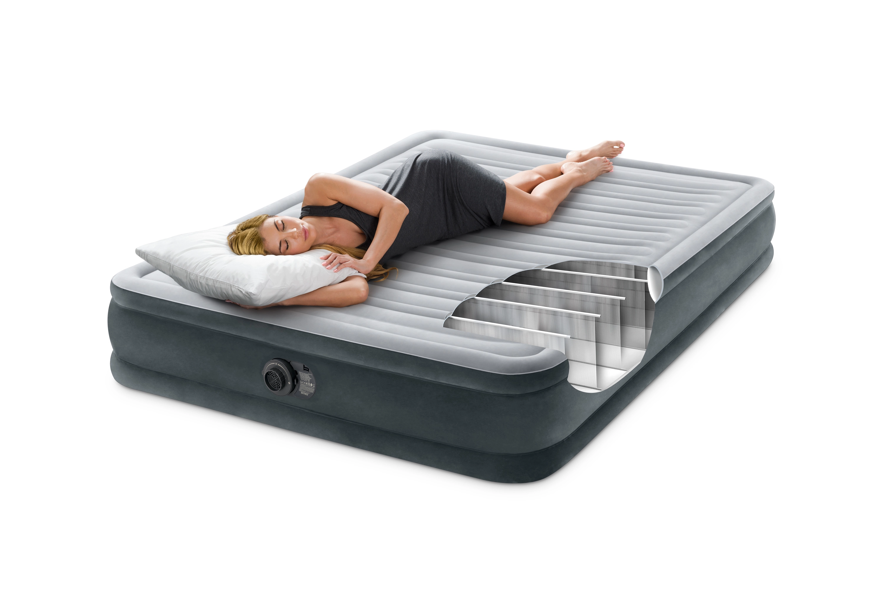 Integrētais pumpis nodrošina ātru un bezpiepūles uzpūšanu un izpūšanu. Pietiek pieslēgt tīklam un gulta dažu mirkļu laikā ir gatava lietošanai.