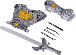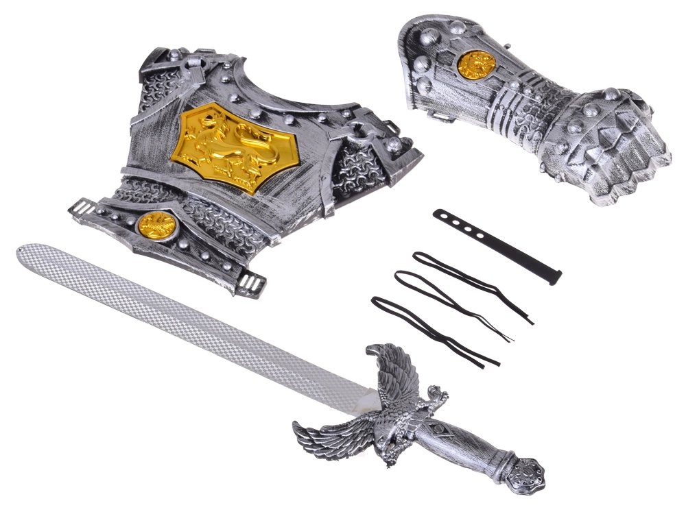 Bruņu un zobena komplekts mazajiem bruņiniekiem, gatavs piedzīvojumiem! Šis komplekts ir ideāla izvēle mazajiem varoņiem, kuri sapņo kļūt par drosmīgiem bruņiniekiem! Tas ietver izturīgas bruņas un zobenu, kas ļaus bērniem izjust īpašu sajūtu un izspēlēt autentiskas bruņinieku cīņas.