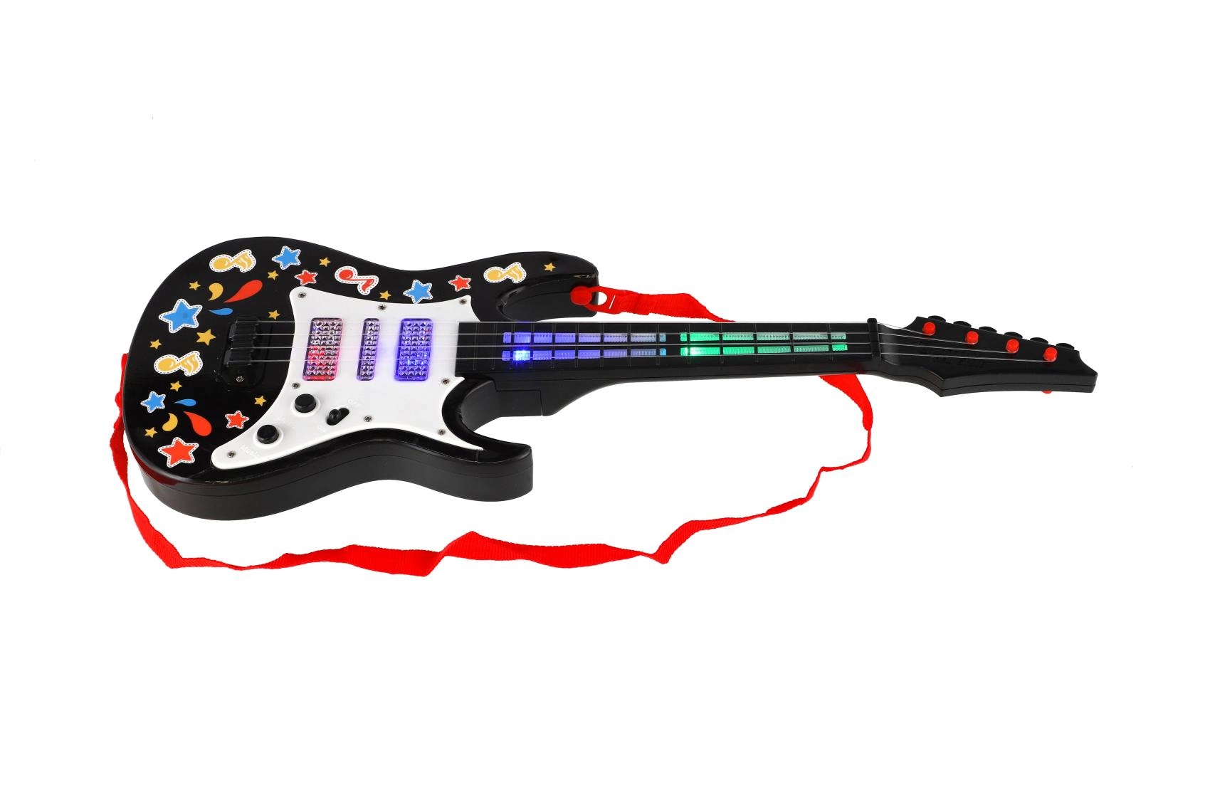 Bērnu elektriskā ģitāra ir ideāls pirmais instruments mazajiem mūzikas mīļotājiem. Pateicoties krāsainajiem LED efektiem un iebūvētajām skaņām, katrs bērnu numurs pārvēršas mazā skatuvē. Vieglā konstrukcija un regulējamā siksna ļauj ērti spēlēt gan stāvus, gan sēdus.