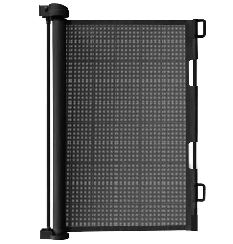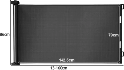 Praktiska izvelkama drošības barjera ar sietu aizsargā bērnus un mājdzīvniekus no bīstamām zonām mājās. Tā ir viegli lietojama, taupa vietu un, pateicoties melnajam dizainam, iederas jebkurā interjerā. Izvelkama līdz 160 cm, augstums 86 cm, izturīgs PVC siets un stingri metāla un plastmasas komponenti nodrošina uzticamu norobežojumu pie durvīm, gaiteņos un pie kāpnēm.