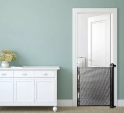 Stingrs, bet caurspīdīgs siets notur suņus un kaķus ārpus aizliegtām telpām un vienlaikus ļauj uzraudzīt bērnus.