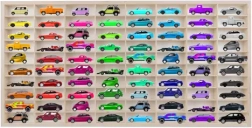 Līdz pat 80 nodalījumi ļauj katru modeli pārskatāmi novietot savā vietā. Bērni ātri atradīs iemīļoto mašīnīti, un kolekcija kļūs par istabas rotu.