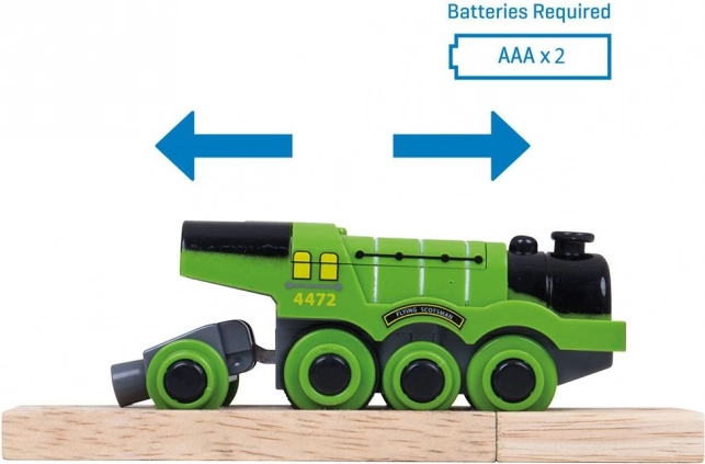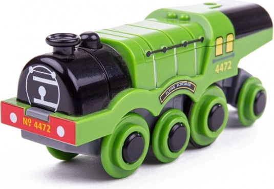 Ikoniska tvaika lokomotīves FLYING SCOTSMAN replika koka dzelzceļiem priecēs ar spēcīgu vilkmi, automātisku braukšanu uz priekšu un vienkāršu vadību ar vienu pogu. Pateicoties magnētiskajai sistēmai, tā var vilkt vairākus vagoniņus, ir saderīga ar lielāko daļu koka sliežu un attīsta bērnu iztēli un motoriku.