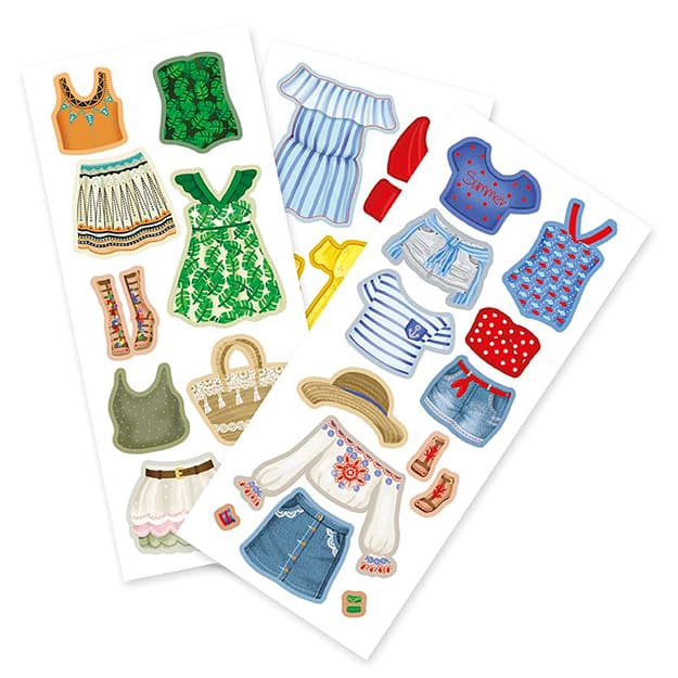 - 30 magnētisku detaļu – apģērbi, apavi un aksesuāri bezgalīgām kombinācijām.