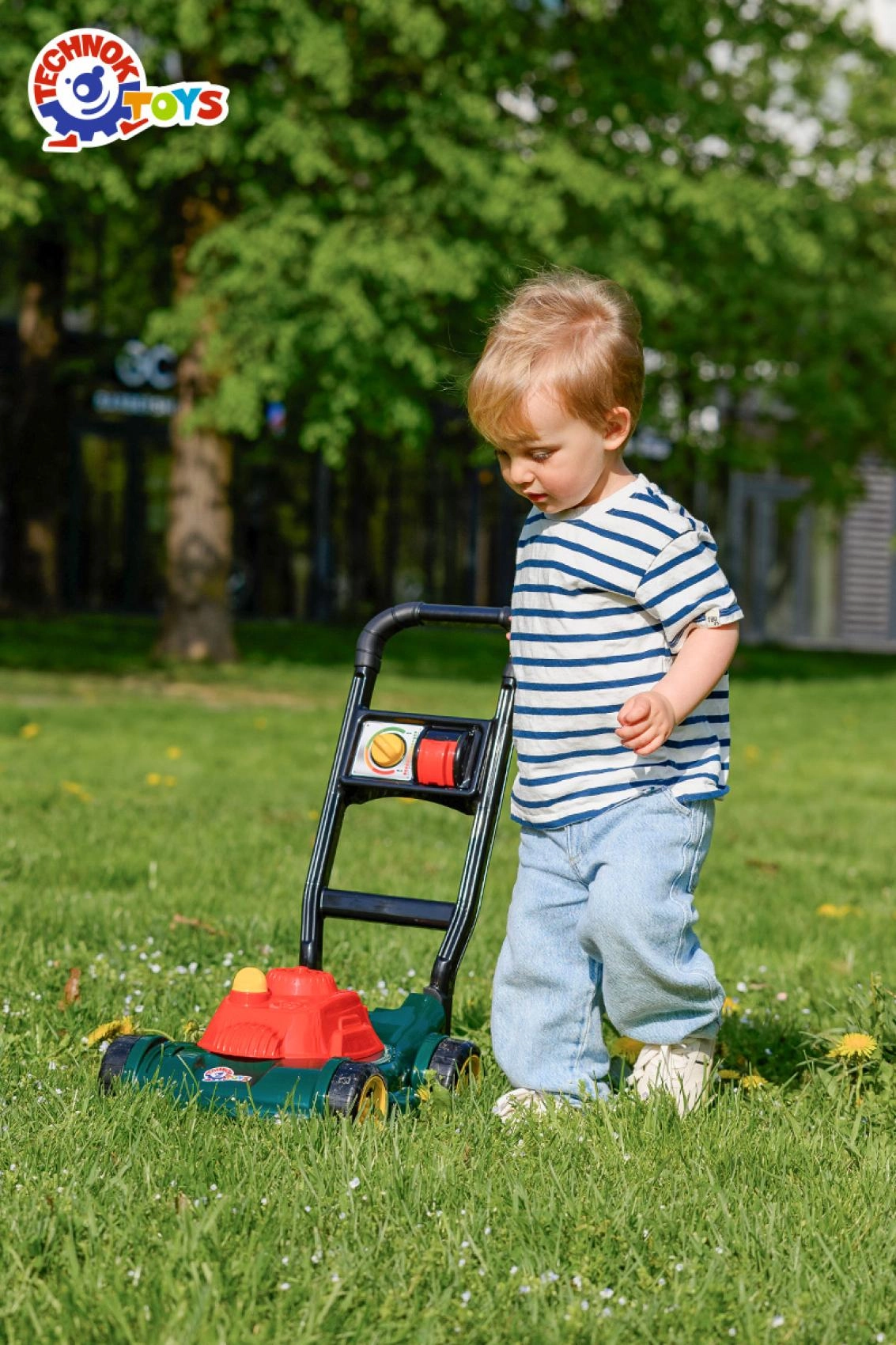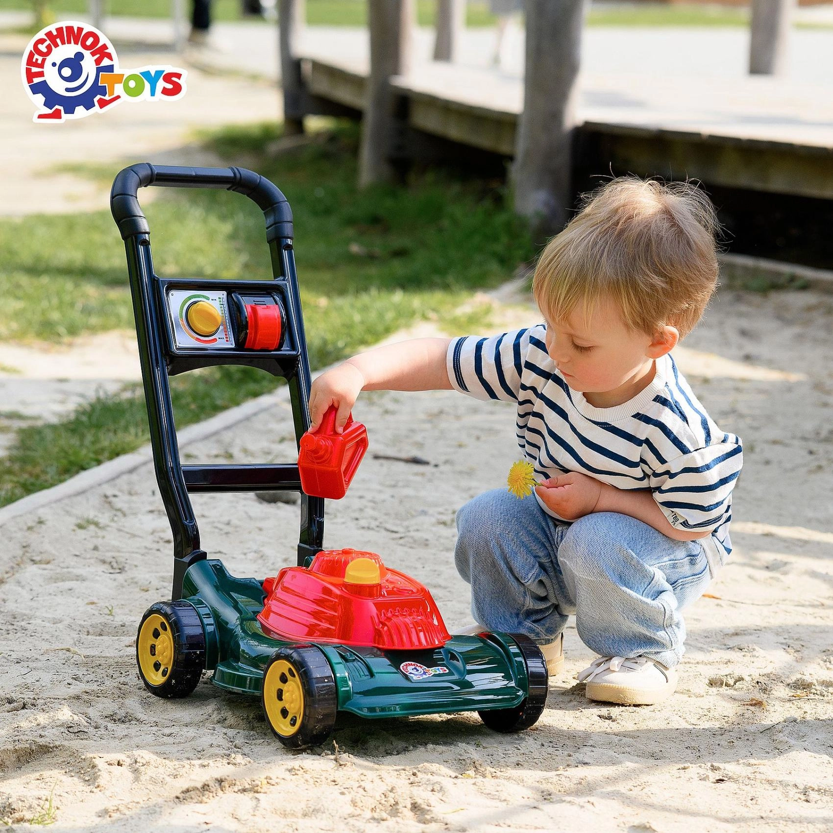 Bērni var izlikties par maziem dārzniekiem, “uzpildīt degvielu” un atdarināt īstu zāles pļaušanu – ideāli iztēles attīstīšanai.