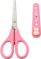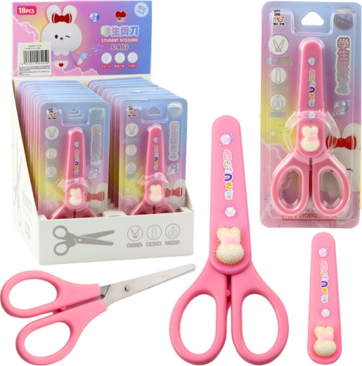 Skolas šķērēm ir dekoratīvs aizsargvāciņš, kas aizsargā asmeņus no bojājumiem un nodrošina drošu glabāšanu penālī vai mugursomā. Dekoratīvais dizains ar bantīti un pasteļrozā krāsa padara šķēres par jautru un pievilcīgu piederumu.