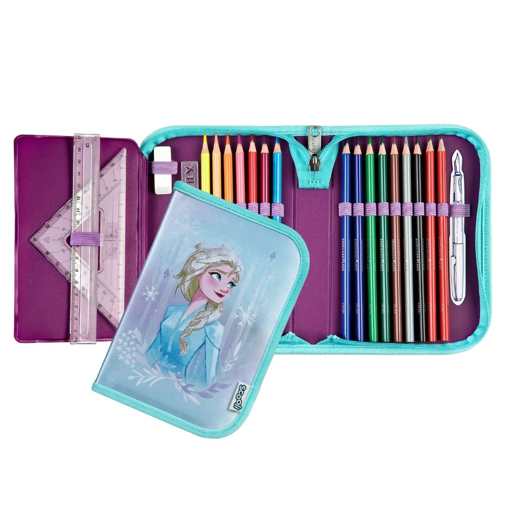 Frozen sērijas Undercover penālis piedāvā dizainu no iemīļotās filmas Ledus valstība, kas patiks gan mazākiem, gan lielākiem bērniem. Tas ir izgatavots no izturīga poliestera, kas nodrošina ilgu kalpošanas laiku un satura aizsardzību. Ar izmēriem 14 x 20 x 3 cm tas piedāvā pietiekami daudz vietas pilnam skolas piederumu komplektam, tostarp 14 krāsainām zīmuļiem, zīmuļiem, lineālam un citām lietām.