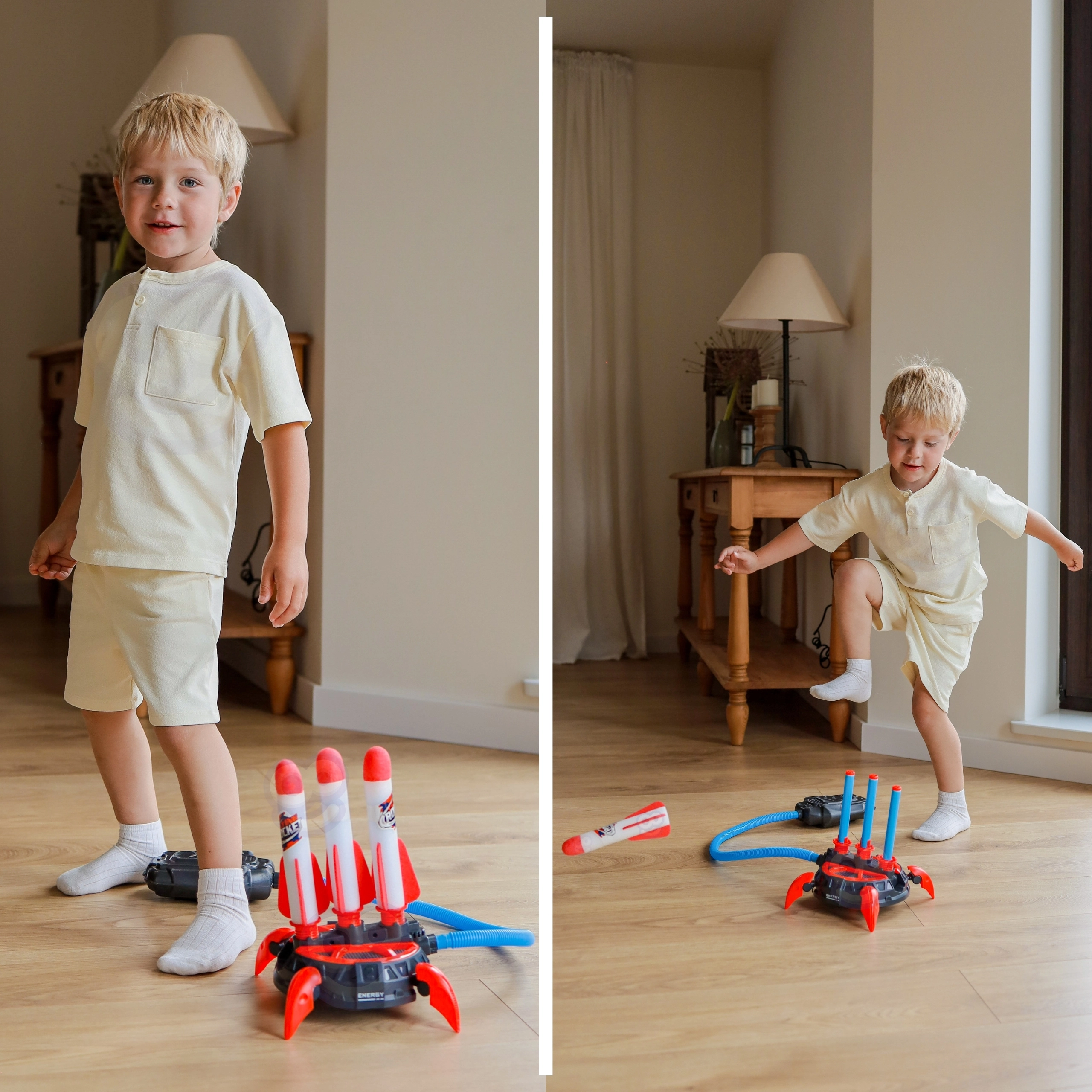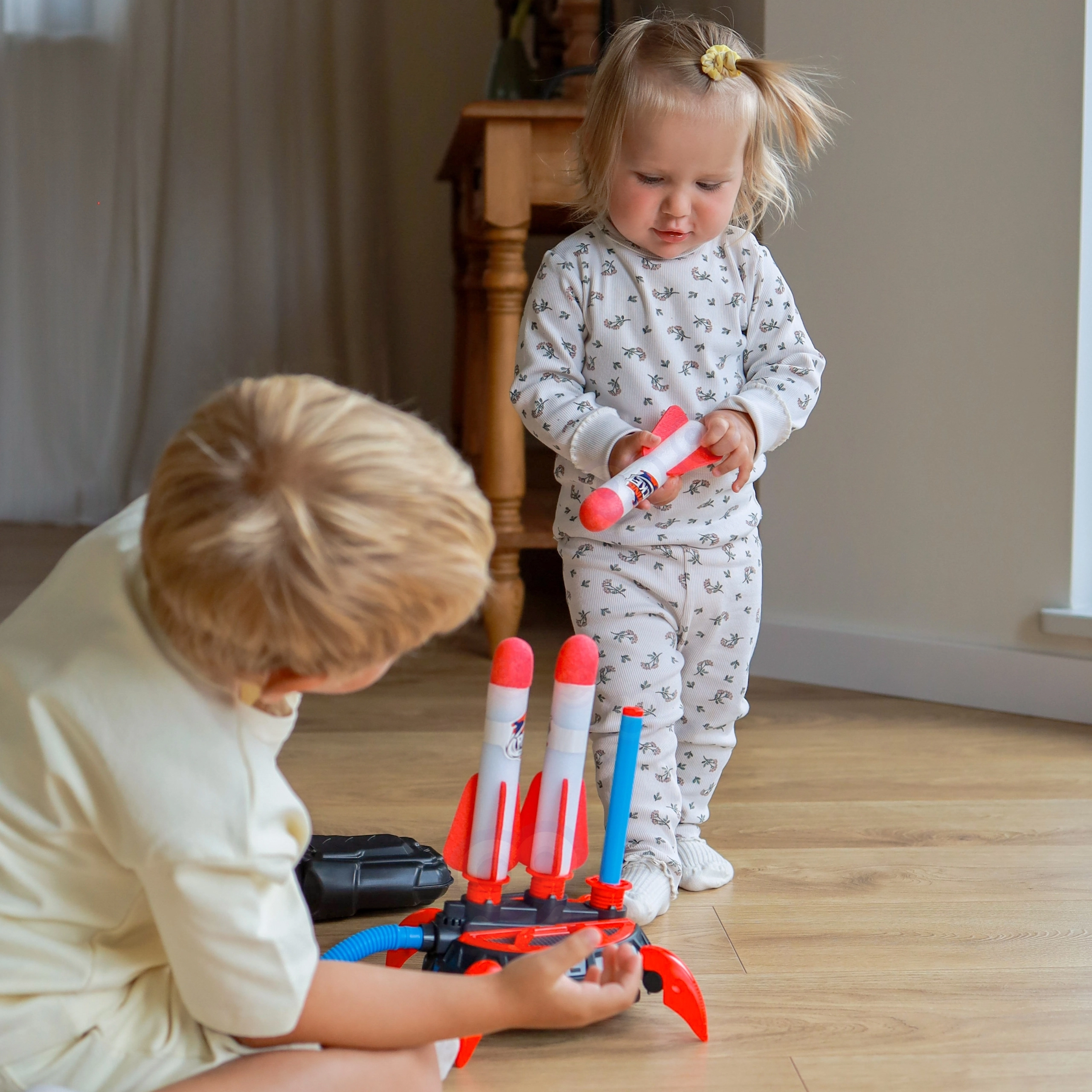 Rotaļlieta attīsta lielo motoriku, koordinācijas prasmes un interesi par zinātni. Pateicoties vienkāršai salikšanai bez instrumentiem, tā ir ideāli piemērota dārzam, parkam un pagalmam – bet mīkstie raķešu gali garantē drošu izklaidi bez asām malām.
