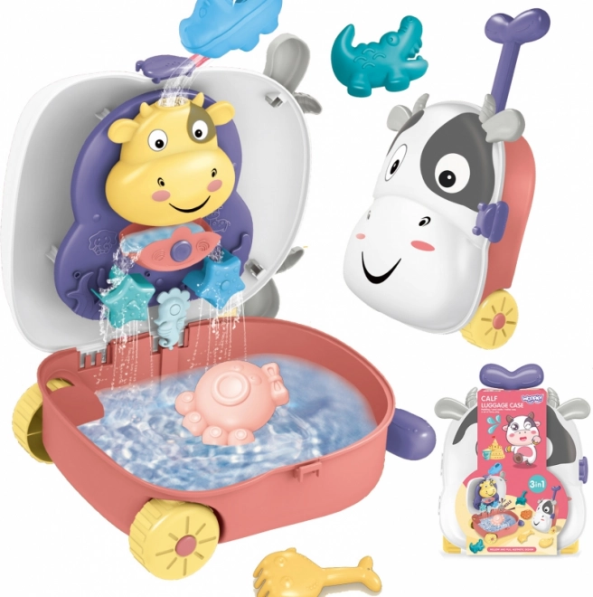 - 3-in-1: koferītis, ūdens rotaļa, smilšu komplekts