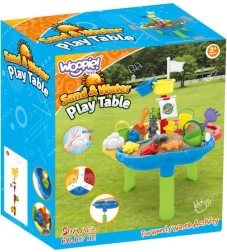 Izbaudiet neaizmirstamu piedzīvojumu! Daudzfunkcionālais WOOPIE ūdens un smilšu galds ir ideāla izvēle bērniem no 3 gadu vecuma. Šis komplekts apvieno 3 funkcijas – smilšu kasti, ūdens galdu un pirātu kuģi, ļaujot mazajiem piedzīvojumu meklētājiem celt smilšu pilis un veikt ūdens eksperimentus.