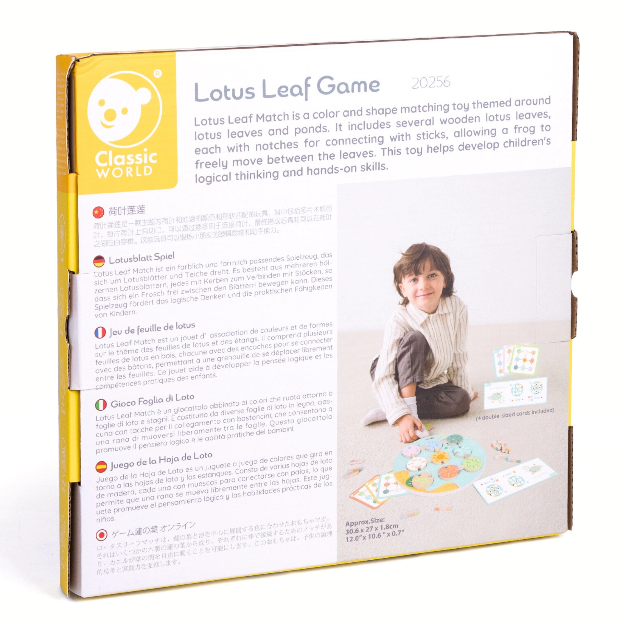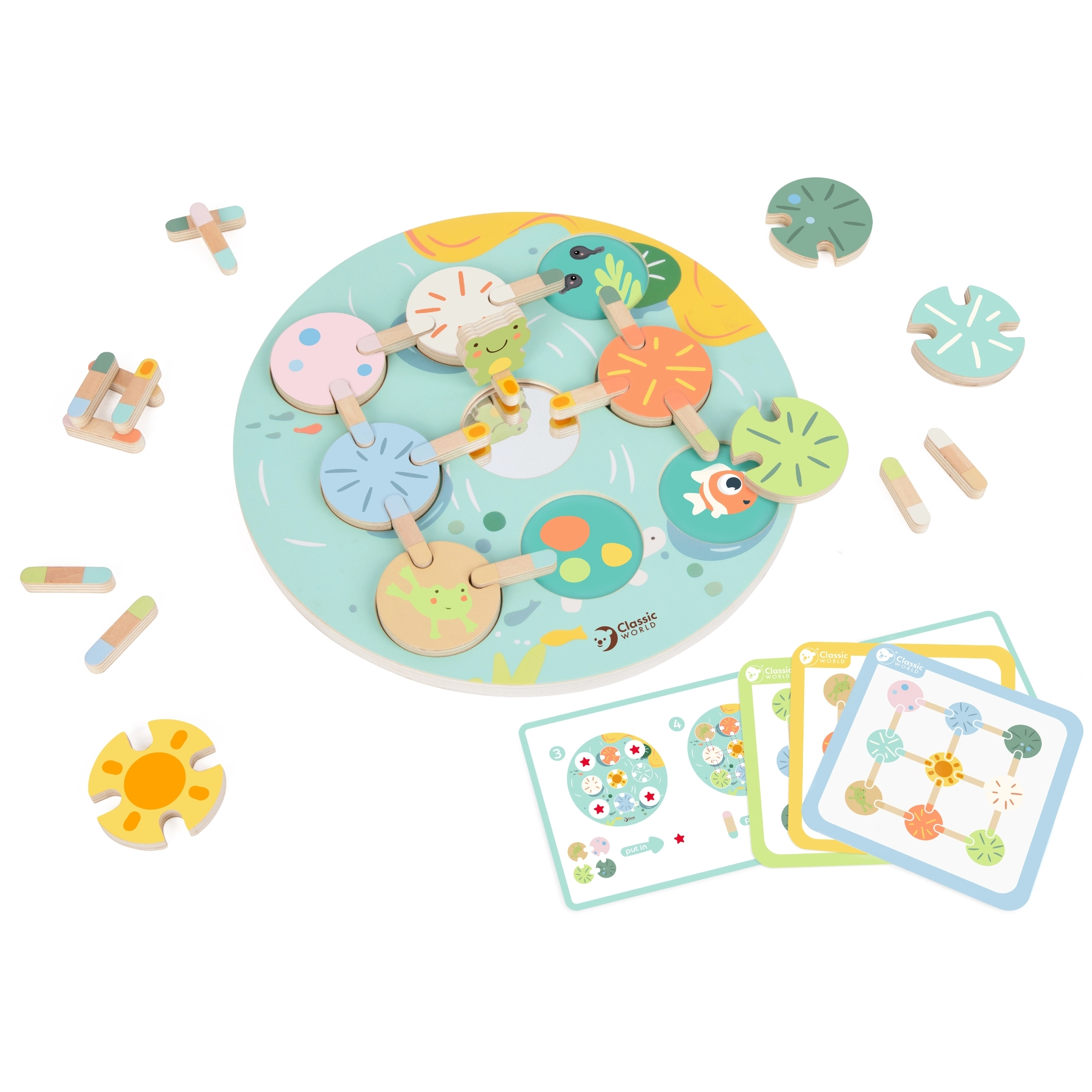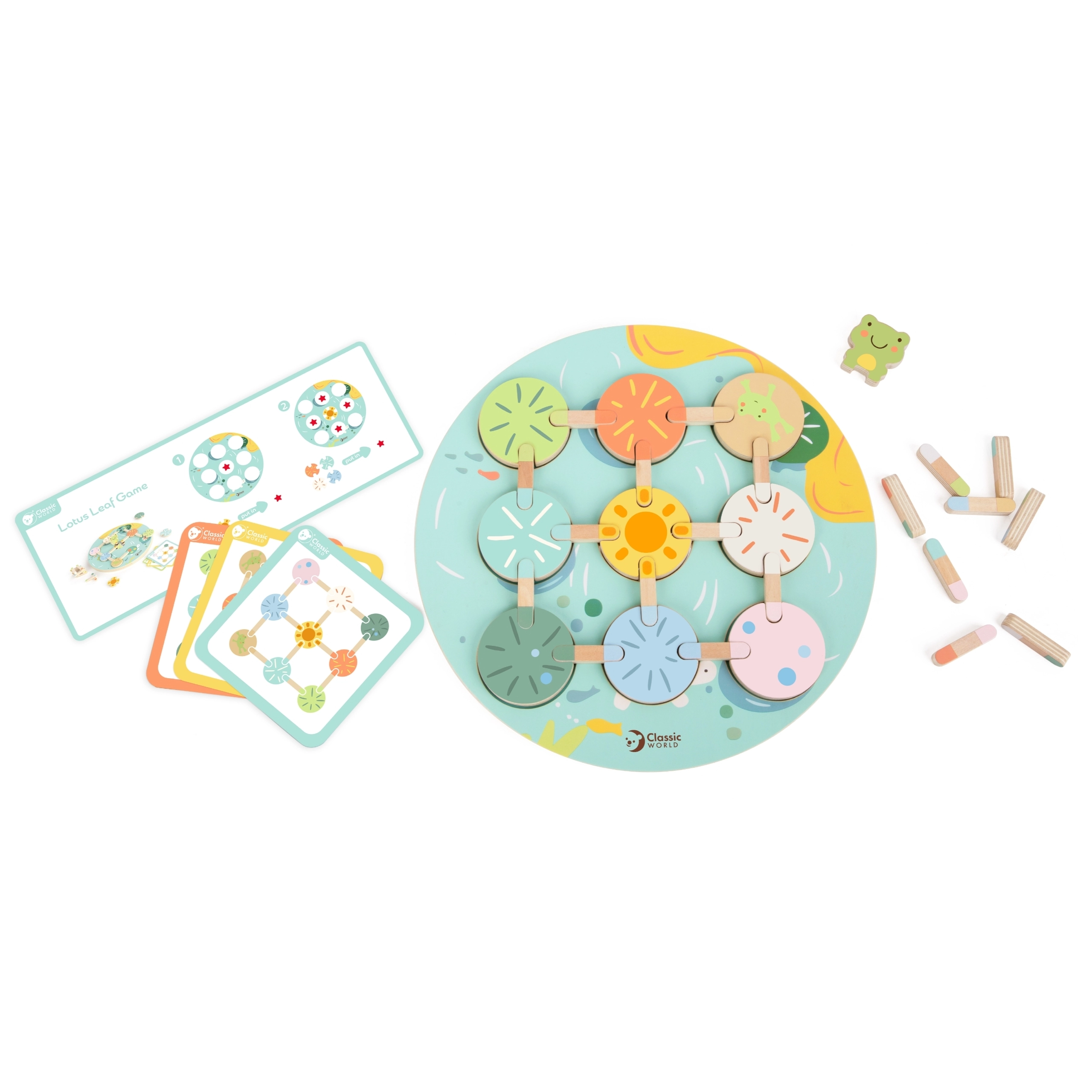 Sensorā spēle Lotosa lapa no Classic World ievelk jūsu bērnu pasaulē, kas pilna ar izklaidi un atklājumiem. Ar krāsainiem koka elementiem, kurus var kombinēt, šī spēle piedāvā bezgalīgas iespējas motorikas prasmju un radošuma attīstīšanai.