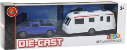 Lielisks komplekts ar zilu auto un karavānu ir perfekts ikvienam bērnam, kurš mīl automašīnas un iztēli. Pateicoties die-cast tehnoloģijai, auto ir izturīgs metāla korpuss ar plastmasas detaļām.