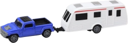 Komplekts auto ar karavānu ir ideāls mazajiem auto un piedzīvojumu cienītājiem. Ar metāla šasiju un plastmasas elementiem tas piedāvā izturību un lielisku izklaidi, pateicoties atvienojamam karavānam un detalizētam, reālistiskam izpildījumam.
