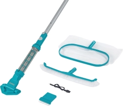 Uzturiet ūdeni kristāldzidru bez piepūles ar bezvadu baseina tīrīšanas komplektu Bestway AquaSurge. Šis vieglais un jaudīgais komplekts apvieno akumulatora putekļsūcēju, teleskopisko kātu un maināmus uzgaļus ātrai netīrumu noņemšanai. Līdz 50 min darbības, USB uzlāde, viegla vadība ar vienu pogu un līdz pat 6,1 m sasniedzamība padara to par ideālu izvēli gan virszemes, gan iebūvētajiem baseiniem.
