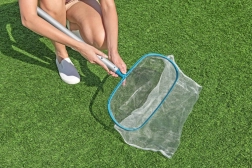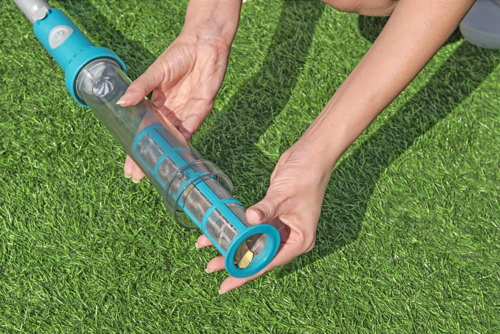 Bezvadu baseina putekļsūcējs Bestway AquaSurge taupa laiku un pūles. Pateicoties caurspīdīgajai savākšanas tvertnei ar tilpumu 0,54 l, uzreiz redzēsiet savāktos netīrumus, bet smalkais filtrs aizturēs lapas, smiltis un sīkas nogulsnes. Trīssegmentu teleskopiskais alumīnija kāts nodrošina ērtu piekļuvi visai baseina virsmai un vieglu manevrēšanu pie sienām un stūros.