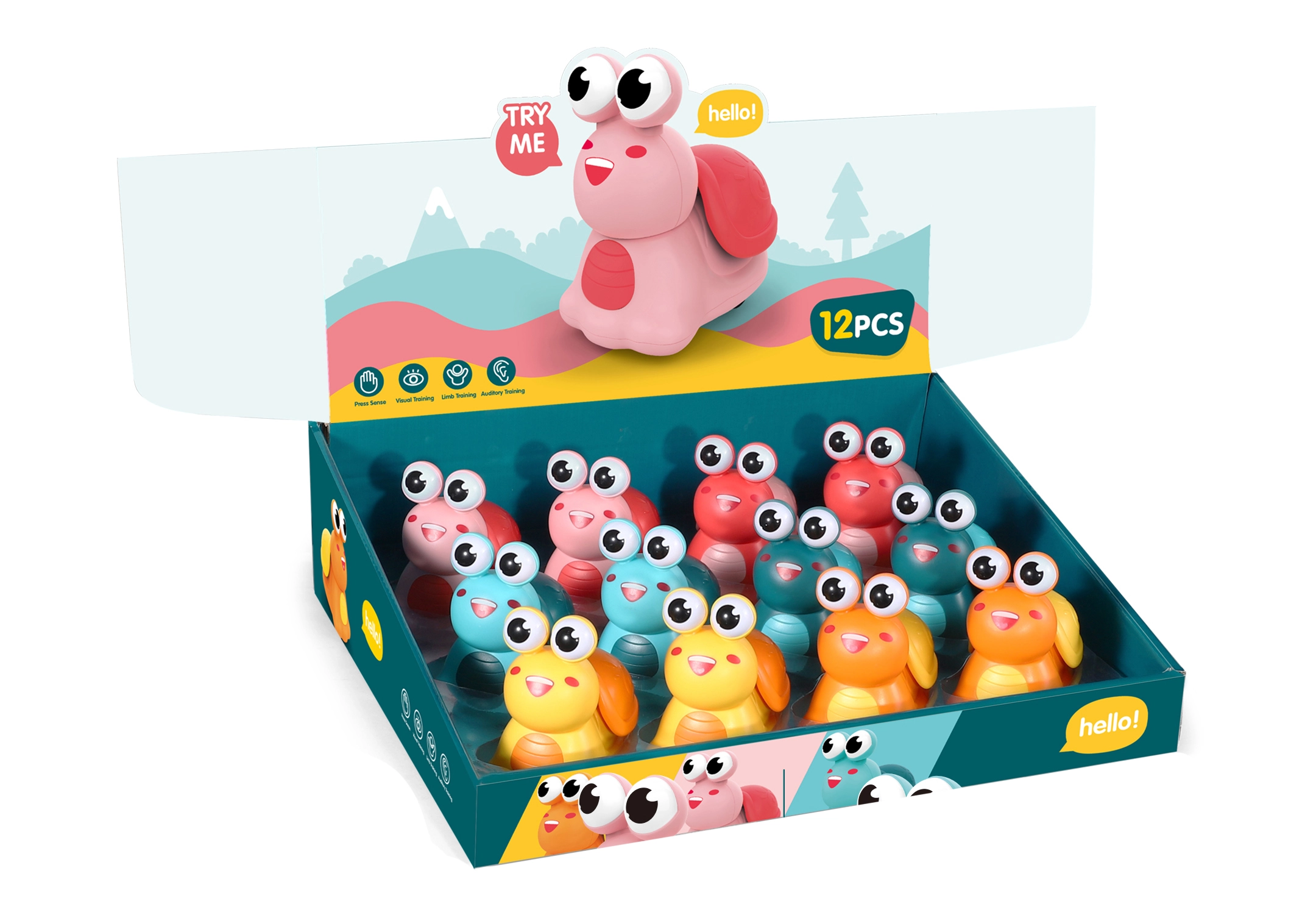 Gliemezis ir veidots tā, lai būtu viegli vadāms mazām bērnu rociņām. Vienkārši nospiediet bruņas un vērojiet, kā gliemezis atdzīvojas un dodas savā ceļā.