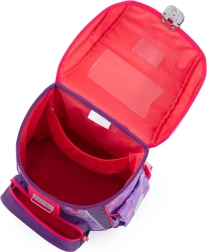 Mugursoma sastāv no vienas ietilpīgas nodalījuma, kas viegli ietilpina visas skolas piederumus. Somai ir stingra apakša satura aizsardzībai. Aizdare ar drošu metāla sprādzi un atstarojošu elementu. Priekšējā kabatiņa paredzēta uzkodām, un neiztrūkst atstarojošie elementi redzamības nodrošināšanai.