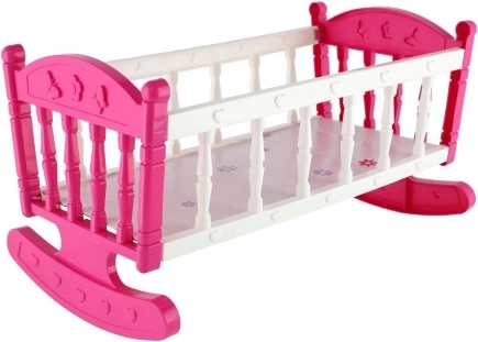 Rozā un balts šūpulītis ar smalkiem dekoriem ir izgatavots no izturīgas plastmasas, ļaujot šūpot un iemidzināt lellīti. Ideāli fantāzijas attīstīšanai spēles laikā.