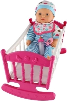 Šoreiz piedāvājam unikālu lellīti ar šūpulīti, kas lieliski papildinās ikviena bērna rotaļu pasauli. Lellītes mīkstais ķermenītis nodrošina ērtu satveršanu un pārnēsāšanu, piešķirot kustībām spēles laikā lielāku reālismu. Rozā šūpulītis ar baltām svītrām un sirsniņu motīvu ir ideāli piemērots lellītes iemidzināšanai, savukārt tādi aksesuāri kā pudelīte un knupītis rada reālistisku rūpju par mazuli pieredzi.