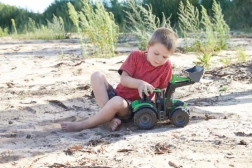 Šis detalizēti izstrādātais traktors ar piekabi ir ideāli piemērots spēlei smilšu kastē, dārzā un mājās. Funkcionālais frontālais iekrāvējs ļauj viegli iekraut smiltis vai sīkus materiālus, savukārt piekabe ar izgāžamu kasti nodrošina ērtu kravas pārvadāšanu un izkraušanu. Lielie, profilētie riteņi un 6 mm metāla riteņu asis rūpējas par stabilitāti un izturību arī intensīvas spēles laikā.