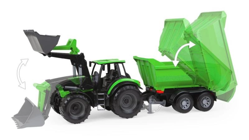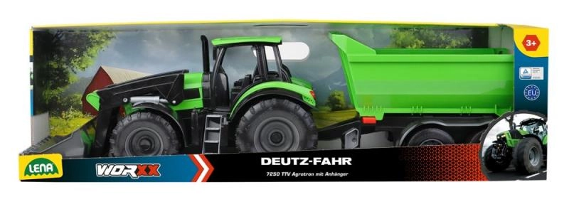 Izturīgs traktors LENA WORXX DEUTZ-FAHR ar piekabi un funkcionālu frontālo iekrāvēju sniedz daudz prieka bērniem no 3 gadu vecuma gan mājās, gan ārā. Rotaļlieta ražota Čehijā no kvalitatīvas plastmasas, tai ir metāla riteņu asis un tā ir pilnīgi mehāniski funkcionāla – var iekraut, pārvadāt un izkraut. Atbilst ES drošības standartiem un, pateicoties izturīgajai konstrukcijai, nodrošina ilgstošu kalpošanu un maksimālu spēles vērtību.