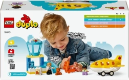 Atbalstiet bērnu pašapziņu un ziņkāri ar krāsaino LEGO DUPLO Pirmais piedzīvojums: Lidostā (10443) komplektu. Lidmašīna ar noņemamu jumtu, drošības kontrole, vadības tornis un mīlīgas figūriņas (bērns, pilots un lācītis) nodrošina stundām ilgu radošu spēli, sīko motoriku un mācīšanos rotaļājoties.