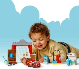 Uzbūvējiet jautru darbnīcu no filmas Disney un Pixar Automašīnas un parūpējieties par Zibeni Makvīnu! Aizraujošais LEGO DUPLO komplekts ar 35 detaļām attīsta sīko motoriku, acs–roku koordināciju un radošu spēli ar atveramām durvīm, mazgātavu ar elastīgu šļūteni un piederumiem, piemēram, atslēgu un skapīti.