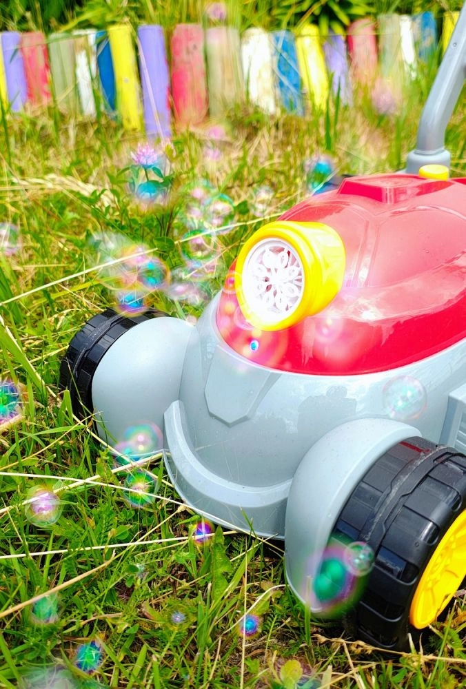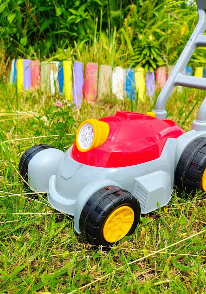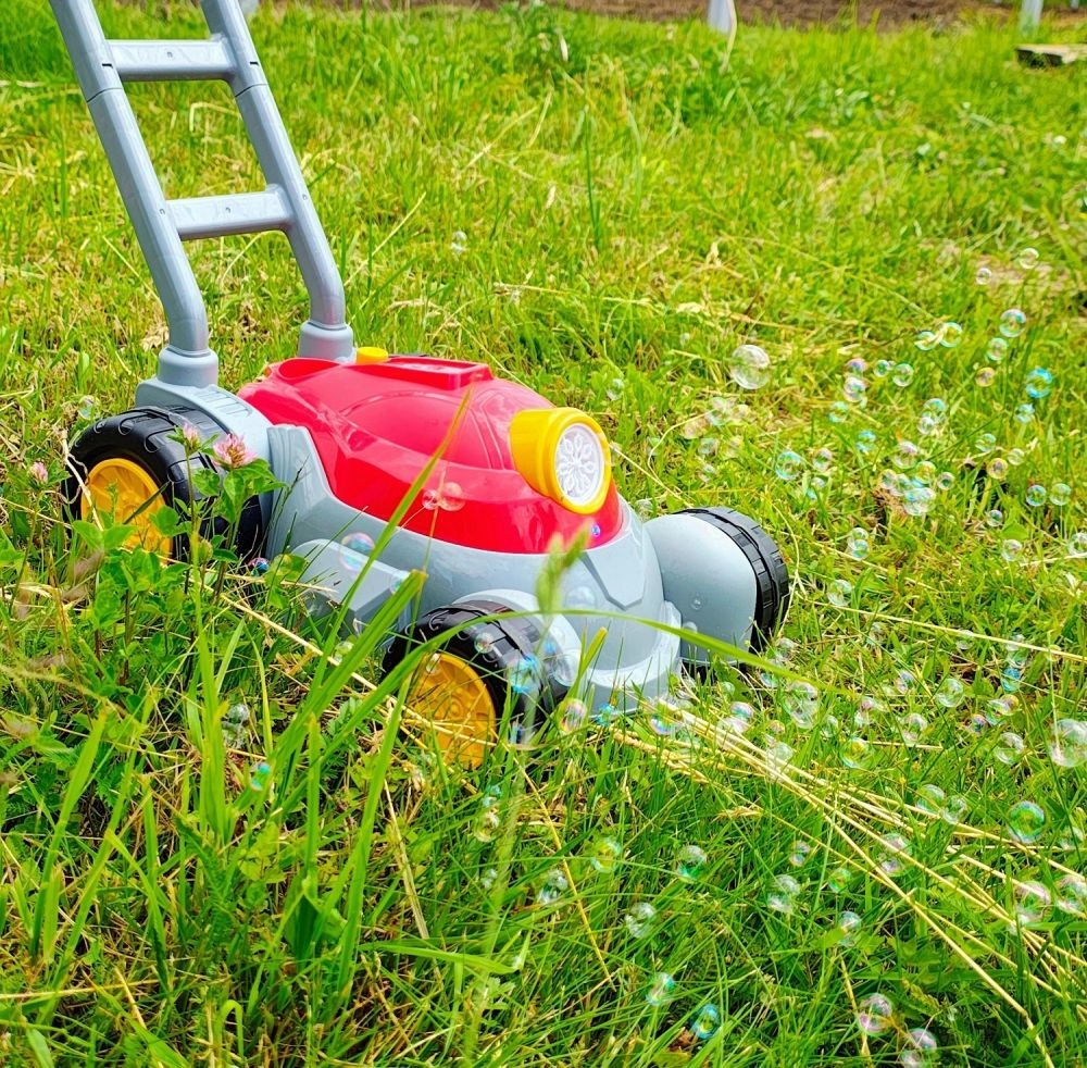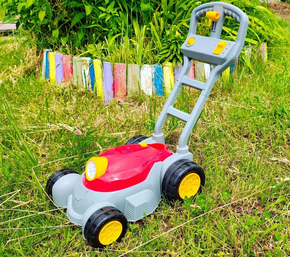 - Bērnu burbuļu zāles pļāvējs ar gaismas un skaņas efektiem
