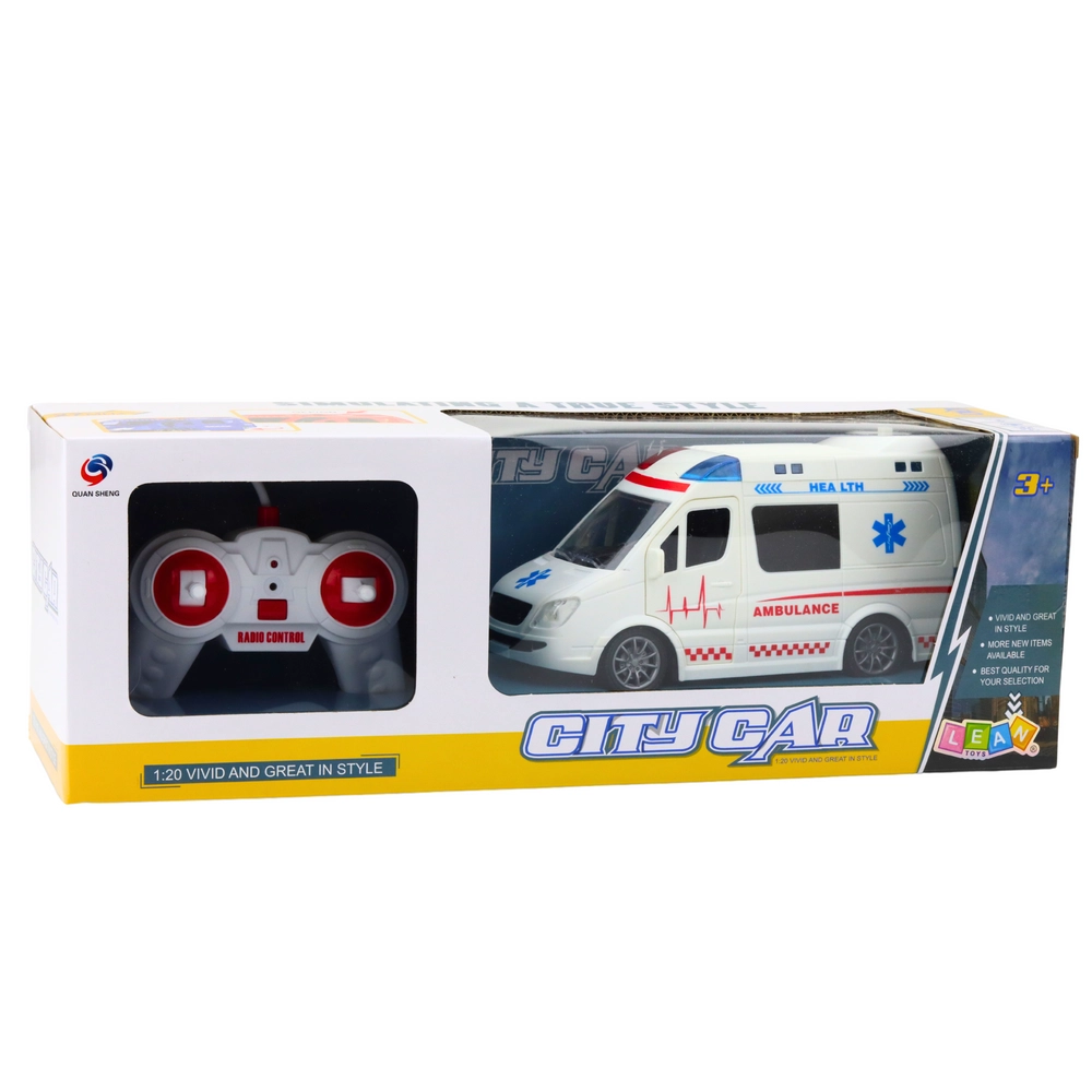 Šī tālvadāmā ātrās palīdzības mašīna ir perfekta dāvana visiem mazajiem glābšanas operāciju cienītājiem. Bērni var kļūt par mazajiem glābējiem un iepazīt drošības noteikumus neierobežotās rotaļās. Transportlīdzeklis pārvietojas visos virzienos: uz priekšu, atpakaļ un pagriežas uz sāniem. Ātra un precīza reakcija uz pults kustībām, ar priekšējo lukturu iedegšanos braucot uz priekšu.