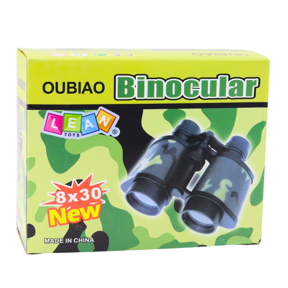 - Iepakojuma saturs: Bērnu binoklis 8x30, aukliņa karināšanai ap kaklu, kartona iepakojums ar maskēšanās dizainu.