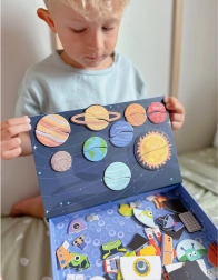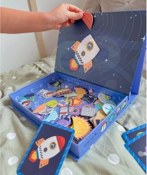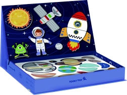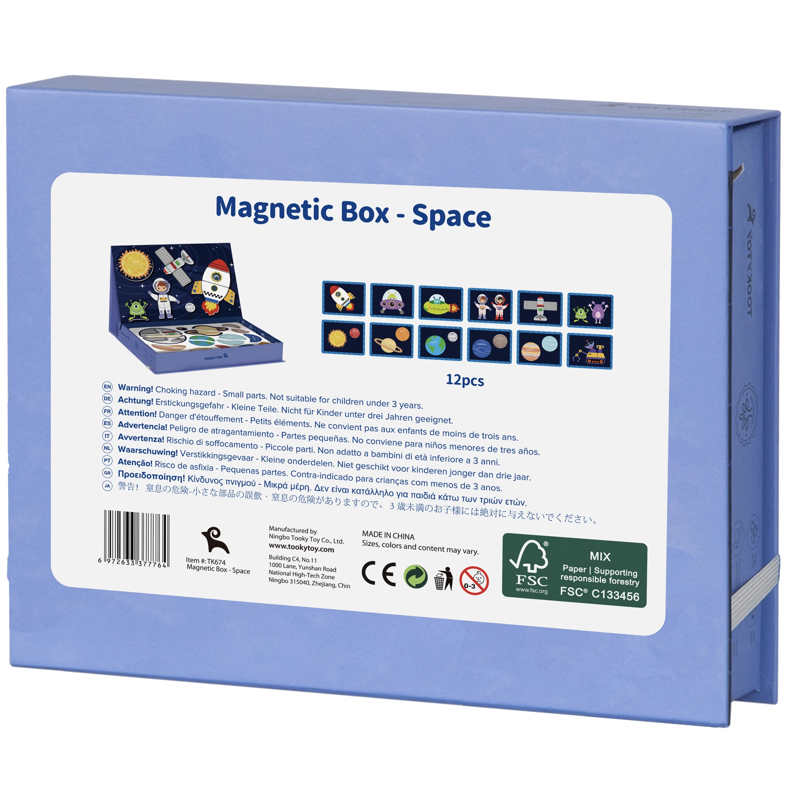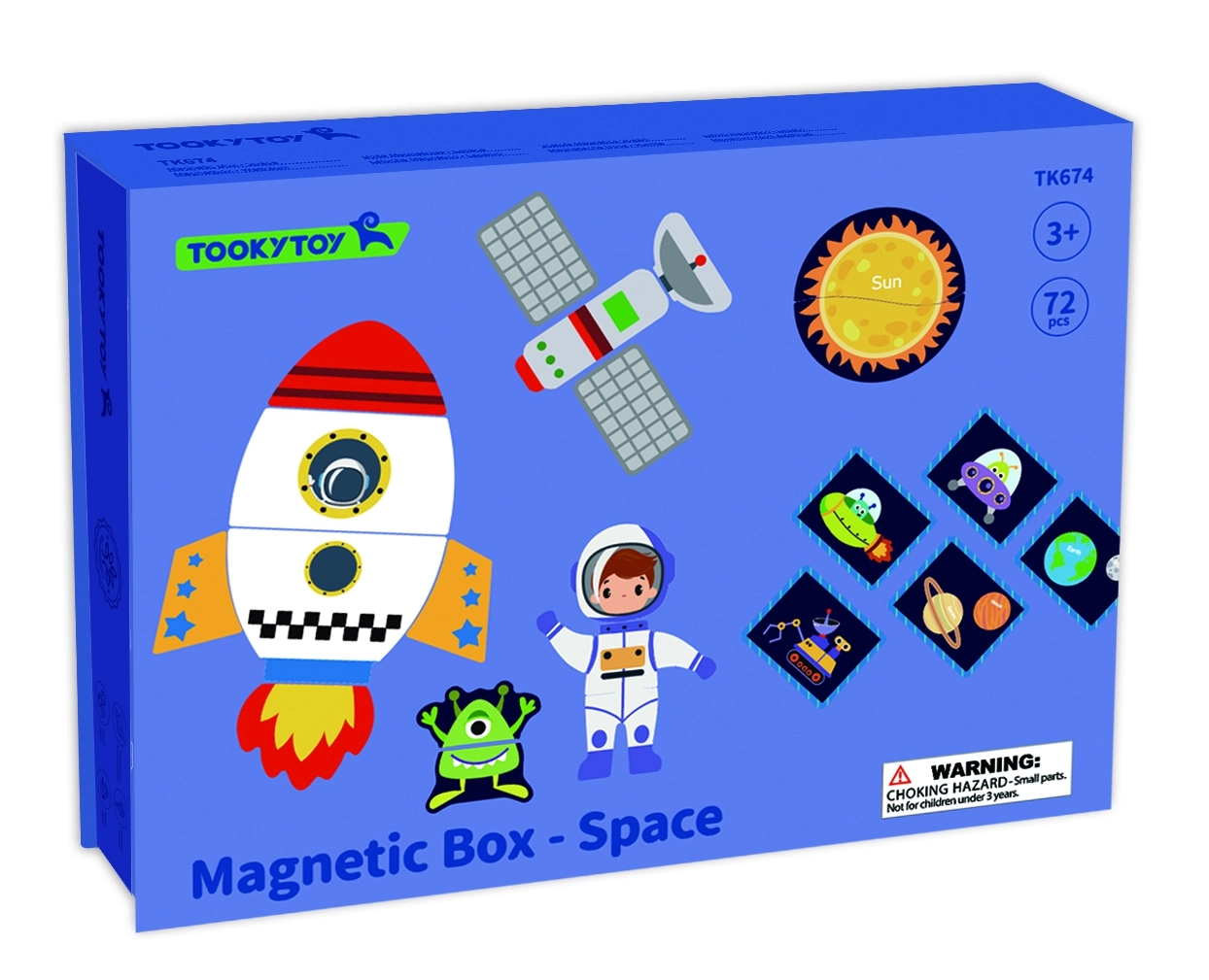 TOOKY TOY magnētiskā puzle ir aizraujoša izglītojoša rotaļlieta, kas bērnus ievadīs bezgalīgajā kosmosa pasaulē. Komplektā ir 12 dažādi kosmosa dizaini, katrs sadalīts četrās līdz piecās magnētiskās puzles daļās. Pateicoties magnētiskajām uzlīmēm, bērni var viegli veidot savas kosmosa ainas uz komplektā iekļautās magnētiskās tāfeles.