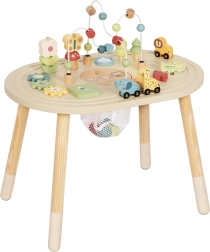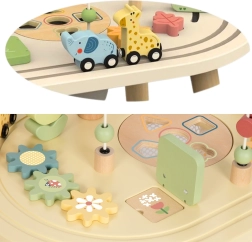 Šis burvīgais koka galds pašiem mazākajiem ir ideāls pasaules atklāšanai, pilns krāsu, formu un skaņu, vienlaikus veicinot svarīgu prasmju attīstību. Perfekta izvēle stundām ilgiem priekiem, kur katrs pieskāriens jūsu mazajam pētniekam būs kā panākums.